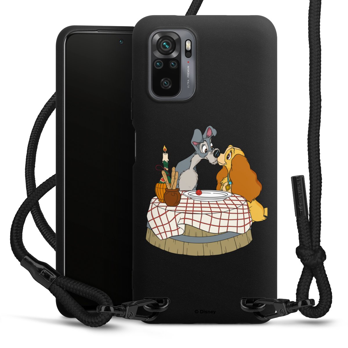 The matt black silicone case is made of flexible TPU (thermoplastic polyurethane) and offers robust protection. The durable, unbreakable material makes the cover flexible and dimensionally stable at the same time. The matte surface makes your design stand out more and is less susceptible to fingerprints and dirt. The stylish trend accessory fits comfortably in the hand and is perfectly complemented by the fabric (polyester) mobile phone strap. The braided fabric strap is approx. 1.70 metres long with a diameter of approx. 0.5 cm. Due to the special knotting technique, the length of the strap can be adjusted by simply pulling it, so that you can adapt it individually to your wishes. The practical case to wear around your neck is available with the fabric strap in black. As a little icing on the cake, we have provided the strap with a chic metal fastener in matt black. The strap is securely fastened to the case with loops made of high-quality genuine leather and press studs. The ends of the fabric strap are covered with metallic end caps and thus protected from fraying.