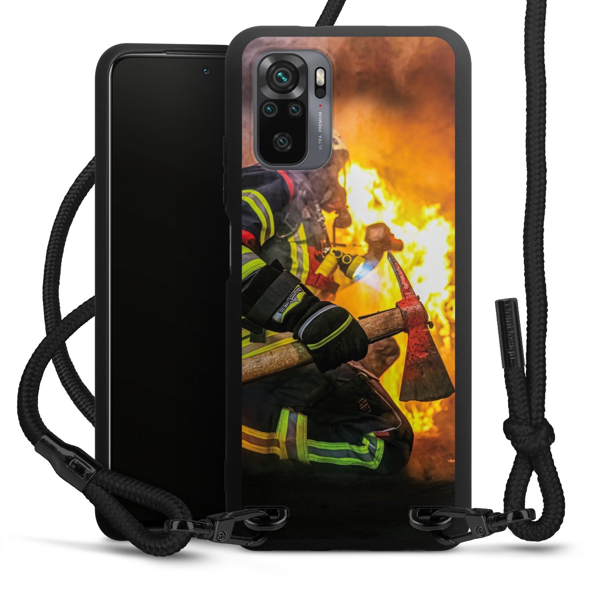 The matt black silicone case is made of flexible TPU (thermoplastic polyurethane) and offers robust protection. The durable, unbreakable material makes the cover flexible and dimensionally stable at the same time. The matte surface makes your design stand out more and is less susceptible to fingerprints and dirt. The stylish trend accessory fits comfortably in the hand and is perfectly complemented by the fabric (polyester) mobile phone strap. The braided fabric strap is approx. 1.70 metres long with a diameter of approx. 0.5 cm. Due to the special knotting technique, the length of the strap can be adjusted by simply pulling it, so that you can adapt it individually to your wishes. The practical case to wear around your neck is available with the fabric strap in black. As a little icing on the cake, we have provided the strap with a chic metal fastener in matt black. The strap is securely fastened to the case with loops made of high-quality genuine leather and press studs. The ends of the fabric strap are covered with metallic end caps and thus protected from fraying.