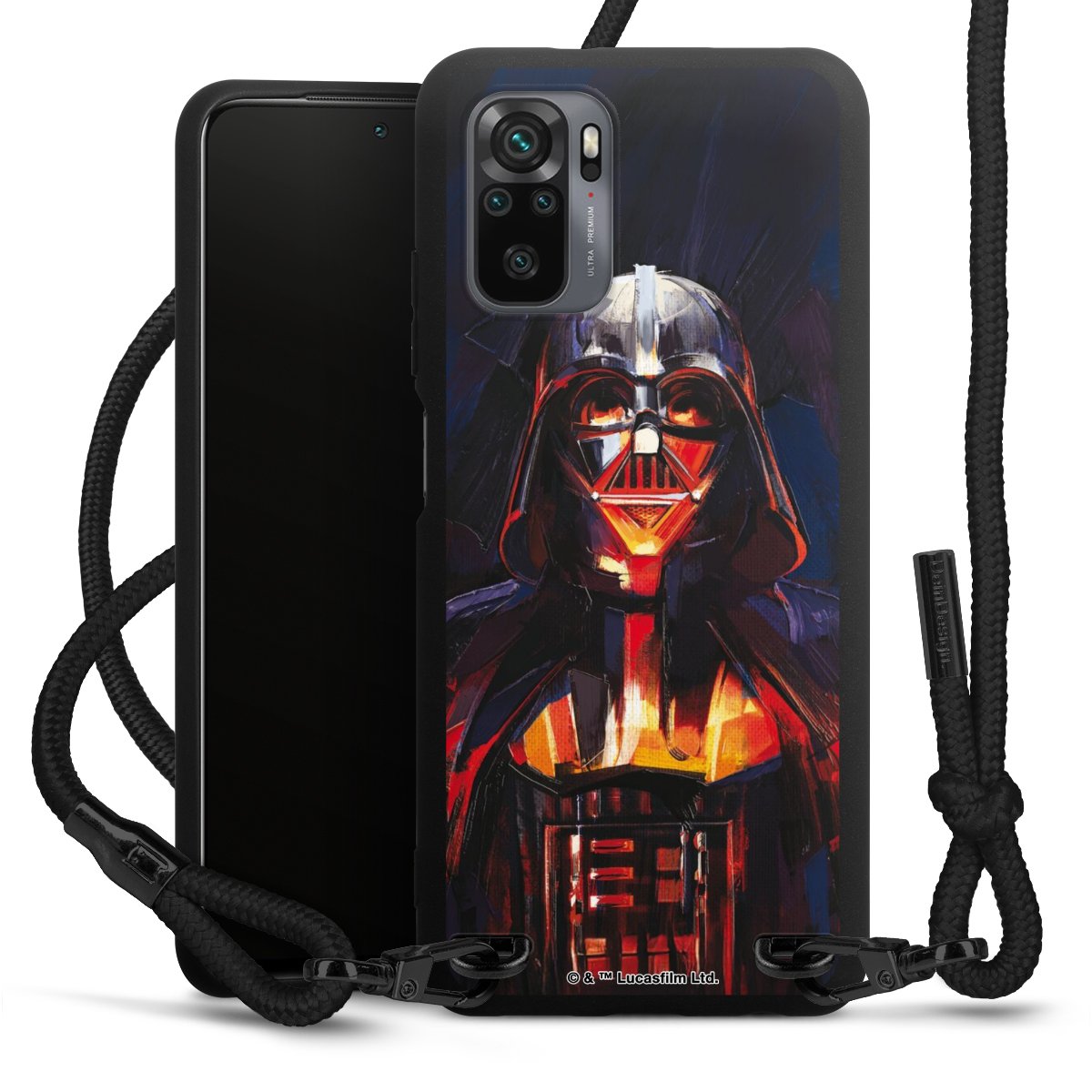 The matt black silicone case is made of flexible TPU (thermoplastic polyurethane) and offers robust protection. The durable, unbreakable material makes the cover flexible and dimensionally stable at the same time. The matte surface makes your design stand out more and is less susceptible to fingerprints and dirt. The stylish trend accessory fits comfortably in the hand and is perfectly complemented by the fabric (polyester) mobile phone strap. The braided fabric strap is approx. 1.70 metres long with a diameter of approx. 0.5 cm. Due to the special knotting technique, the length of the strap can be adjusted by simply pulling it, so that you can adapt it individually to your wishes. The practical case to wear around your neck is available with the fabric strap in black. As a little icing on the cake, we have provided the strap with a chic metal fastener in matt black. The strap is securely fastened to the case with loops made of high-quality genuine leather and press studs. The ends of the fabric strap are covered with metallic end caps and thus protected from fraying.