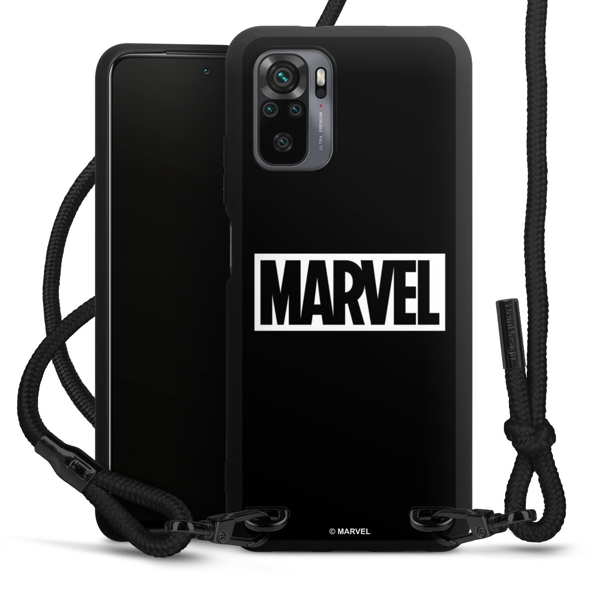 The matt black silicone case is made of flexible TPU (thermoplastic polyurethane) and offers robust protection. The durable, unbreakable material makes the cover flexible and dimensionally stable at the same time. The matte surface makes your design stand out more and is less susceptible to fingerprints and dirt. The stylish trend accessory fits comfortably in the hand and is perfectly complemented by the fabric (polyester) mobile phone strap. The braided fabric strap is approx. 1.70 metres long with a diameter of approx. 0.5 cm. Due to the special knotting technique, the length of the strap can be adjusted by simply pulling it, so that you can adapt it individually to your wishes. The practical case to wear around your neck is available with the fabric strap in black. As a little icing on the cake, we have provided the strap with a chic metal fastener in matt black. The strap is securely fastened to the case with loops made of high-quality genuine leather and press studs. The ends of the fabric strap are covered with metallic end caps and thus protected from fraying.
