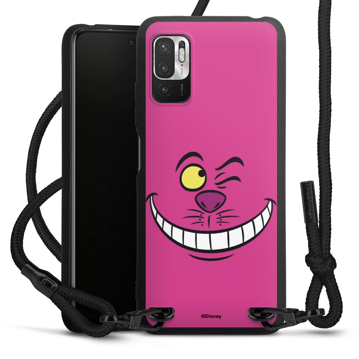 The matt black silicone case is made of flexible TPU (thermoplastic polyurethane) and offers robust protection. The durable, unbreakable material makes the cover flexible and dimensionally stable at the same time. The matte surface makes your design stand out more and is less susceptible to fingerprints and dirt. The stylish trend accessory fits comfortably in the hand and is perfectly complemented by the fabric (polyester) mobile phone strap. The braided fabric strap is approx. 1.70 metres long with a diameter of approx. 0.5 cm. Due to the special knotting technique, the length of the strap can be adjusted by simply pulling it, so that you can adapt it individually to your wishes. The practical case to wear around your neck is available with the fabric strap in black. As a little icing on the cake, we have provided the strap with a chic metal fastener in matt black. The strap is securely fastened to the case with loops made of high-quality genuine leather and press studs. The ends of the fabric strap are covered with metallic end caps and thus protected from fraying.