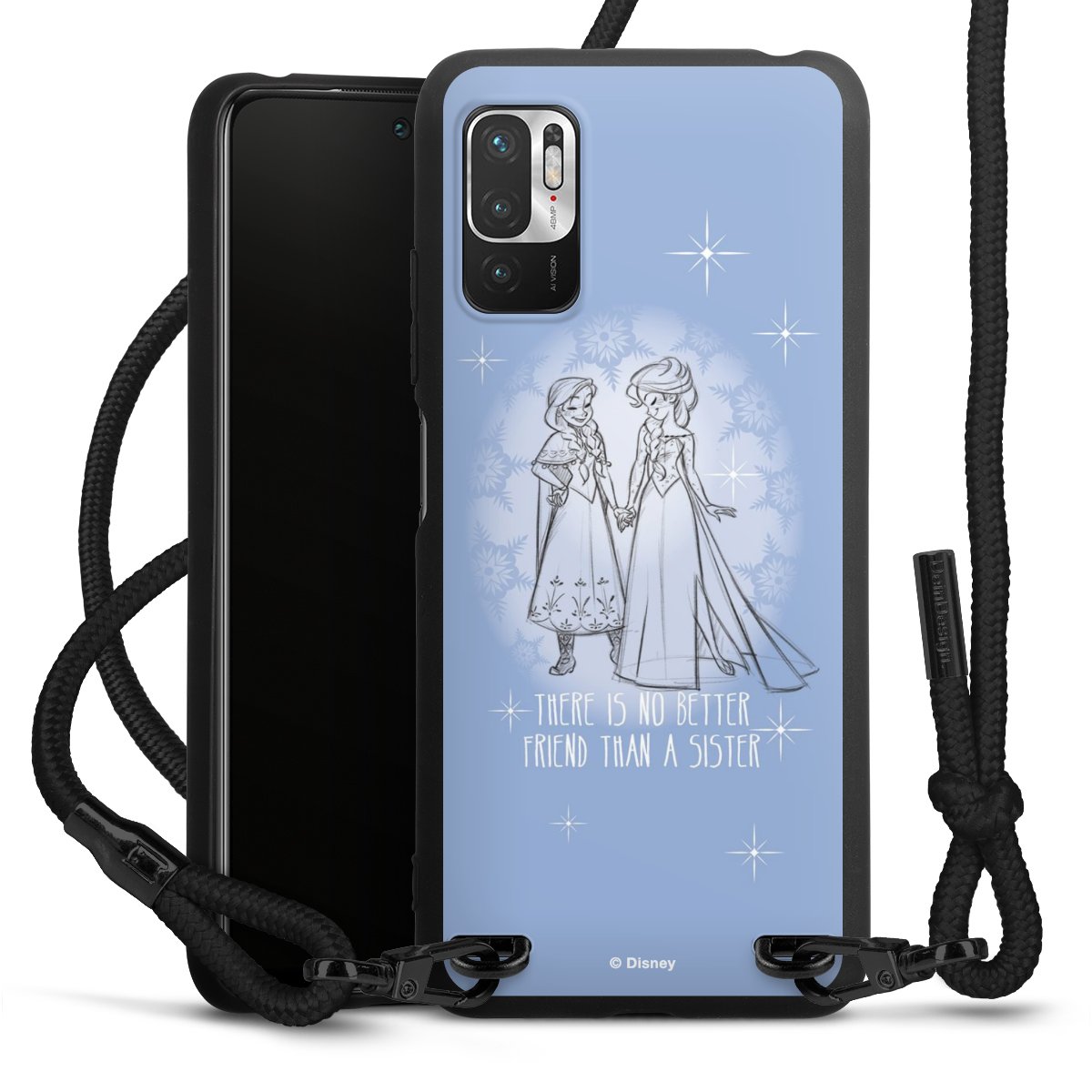 The matt black silicone case is made of flexible TPU (thermoplastic polyurethane) and offers robust protection. The durable, unbreakable material makes the cover flexible and dimensionally stable at the same time. The matte surface makes your design stand out more and is less susceptible to fingerprints and dirt. The stylish trend accessory fits comfortably in the hand and is perfectly complemented by the fabric (polyester) mobile phone strap. The braided fabric strap is approx. 1.70 metres long with a diameter of approx. 0.5 cm. Due to the special knotting technique, the length of the strap can be adjusted by simply pulling it, so that you can adapt it individually to your wishes. The practical case to wear around your neck is available with the fabric strap in black. As a little icing on the cake, we have provided the strap with a chic metal fastener in matt black. The strap is securely fastened to the case with loops made of high-quality genuine leather and press studs. The ends of the fabric strap are covered with metallic end caps and thus protected from fraying.