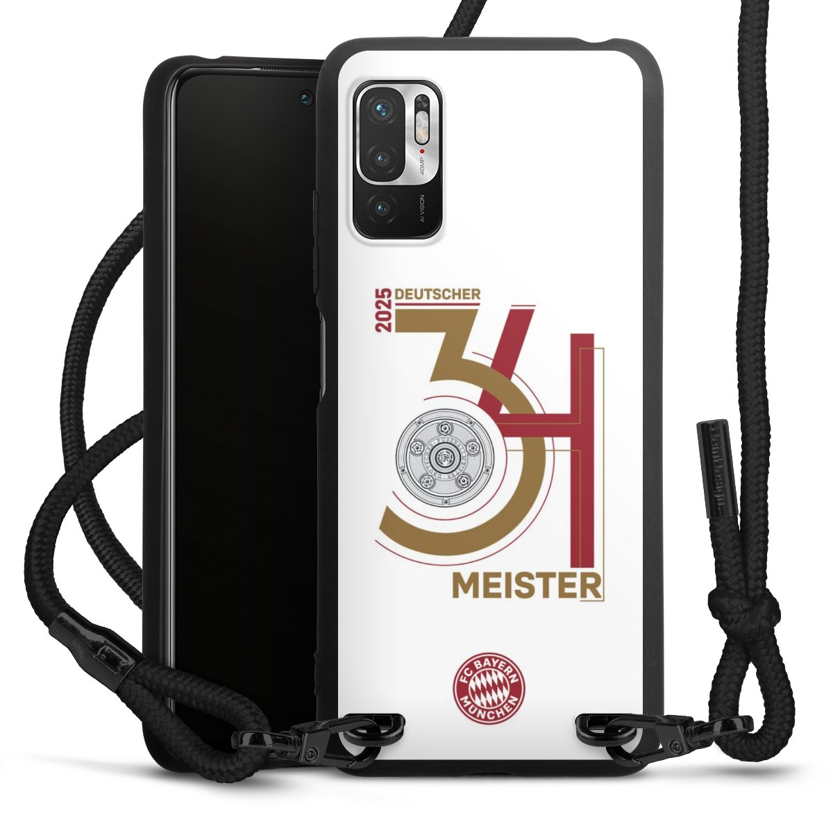 The matt black silicone case is made of flexible TPU (thermoplastic polyurethane) and offers robust protection. The durable, unbreakable material makes the cover flexible and dimensionally stable at the same time. The matte surface makes your design stand out more and is less susceptible to fingerprints and dirt. The stylish trend accessory fits comfortably in the hand and is perfectly complemented by the fabric (polyester) mobile phone strap. The braided fabric strap is approx. 1.70 metres long with a diameter of approx. 0.5 cm. Due to the special knotting technique, the length of the strap can be adjusted by simply pulling it, so that you can adapt it individually to your wishes. The practical case to wear around your neck is available with the fabric strap in black. As a little icing on the cake, we have provided the strap with a chic metal fastener in matt black. The strap is securely fastened to the case with loops made of high-quality genuine leather and press studs. The ends of the fabric strap are covered with metallic end caps and thus protected from fraying.