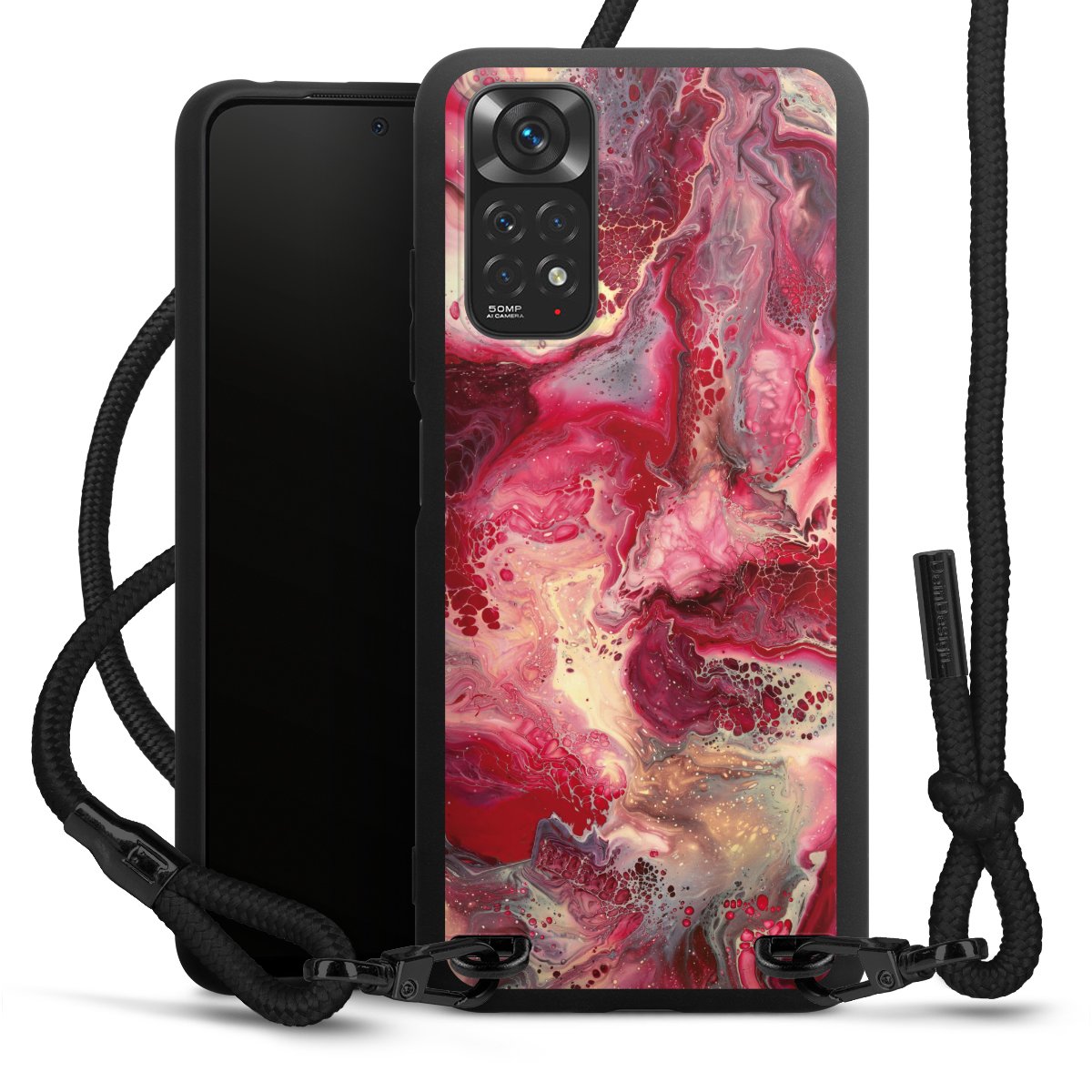 We use the solid direct print process for this phone case, which is why the print area only covers the back and the edge remains unprinted. The case to wear around your neck can be ordered unprinted, fully printed, or partially printed. For your design, either choose one of our exclusive shop motifs or get creative and create your own design, for example with photos and overlays. Design your own personal trend accessory and make an individual statement on the streets!
