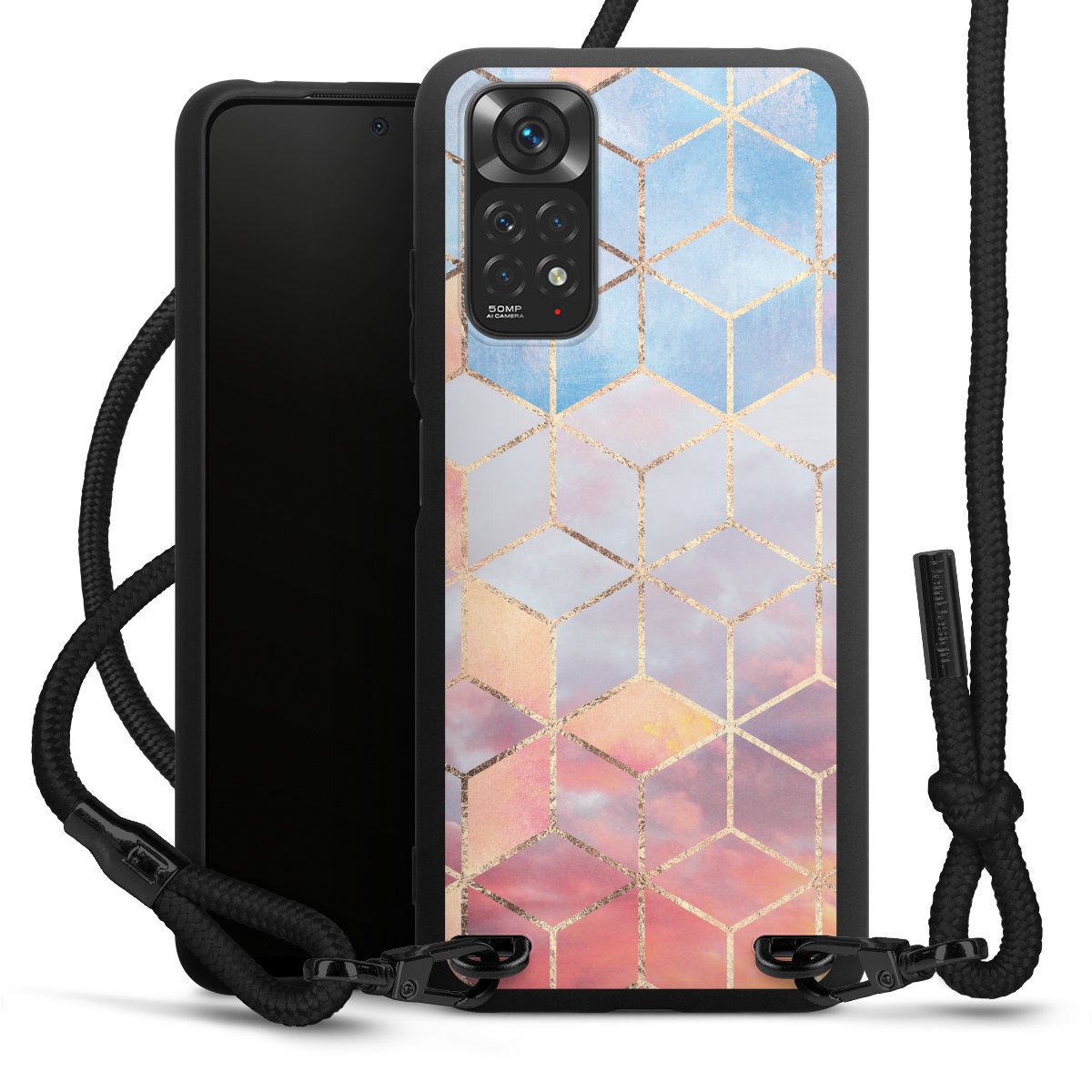 We use the solid direct print process for this phone case, which is why the print area only covers the back and the edge remains unprinted. The case to wear around your neck can be ordered unprinted, fully printed, or partially printed. For your design, either choose one of our exclusive shop motifs or get creative and create your own design, for example with photos and overlays. Design your own personal trend accessory and make an individual statement on the streets!