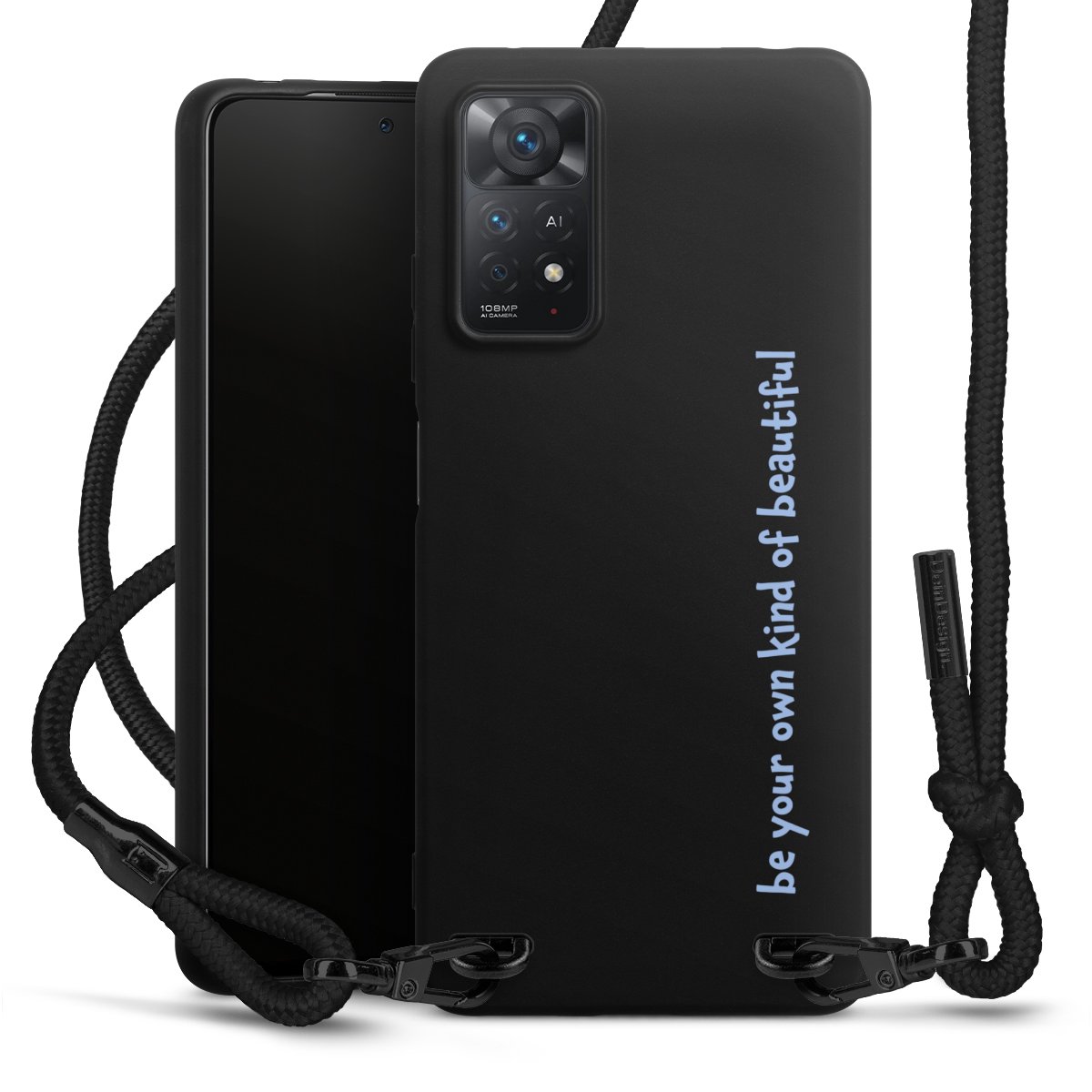We use the solid direct print process for this phone case, which is why the print area only covers the back and the edge remains unprinted. The case to wear around your neck can be ordered unprinted, fully printed, or partially printed. For your design, either choose one of our exclusive shop motifs or get creative and create your own design, for example with photos and overlays. Design your own personal trend accessory and make an individual statement on the streets!