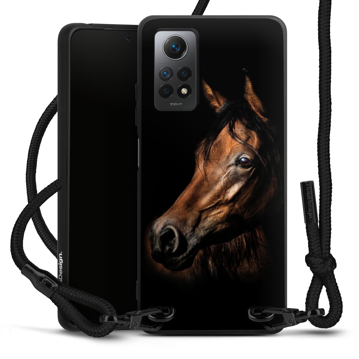 The matt black silicone case is made of flexible TPU (thermoplastic polyurethane) and offers robust protection. The durable, unbreakable material makes the cover flexible and dimensionally stable at the same time. The matte surface makes your design stand out more and is less susceptible to fingerprints and dirt. The stylish trend accessory fits comfortably in the hand and is perfectly complemented by the fabric (polyester) mobile phone strap. The braided fabric strap is approx. 1.70 metres long with a diameter of approx. 0.5 cm. Due to the special knotting technique, the length of the strap can be adjusted by simply pulling it, so that you can adapt it individually to your wishes. The practical case to wear around your neck is available with the fabric strap in black. As a little icing on the cake, we have provided the strap with a chic metal fastener in matt black. The strap is securely fastened to the case with loops made of high-quality genuine leather and press studs. The ends of the fabric strap are covered with metallic end caps and thus protected from fraying.