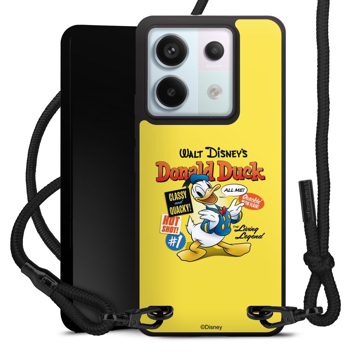Pure Black: Phone case, fabric strap and metal details in stylish matt black.