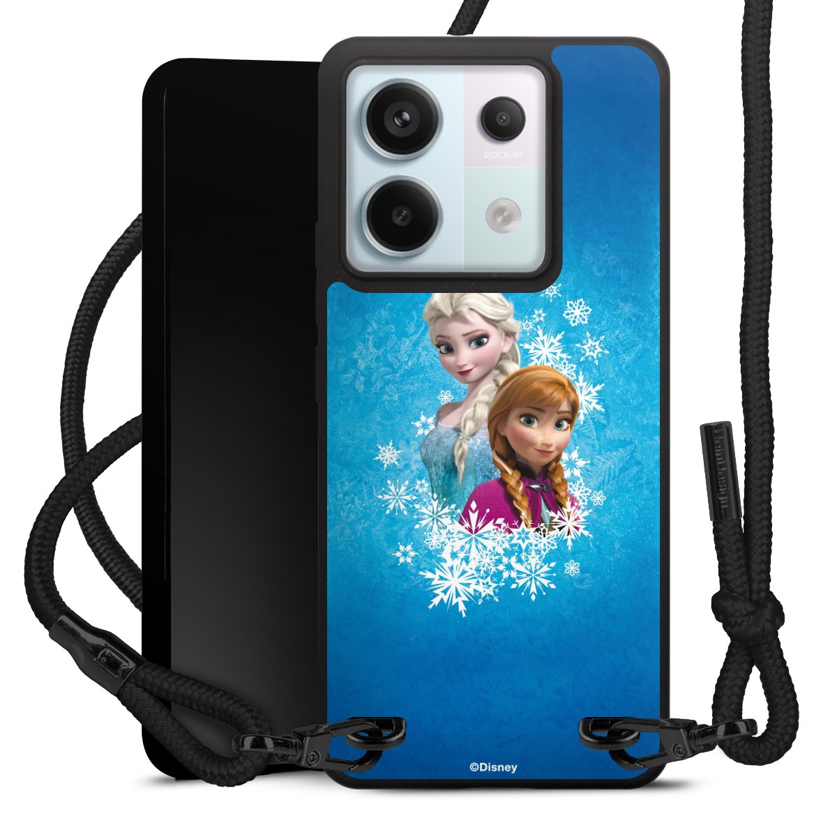 The matt black silicone case is made of flexible TPU (thermoplastic polyurethane) and offers robust protection. The durable, unbreakable material makes the cover flexible and dimensionally stable at the same time. The matte surface makes your design stand out more and is less susceptible to fingerprints and dirt. The stylish trend accessory fits comfortably in the hand and is perfectly complemented by the fabric (polyester) mobile phone strap. The braided fabric strap is approx. 1.70 metres long with a diameter of approx. 0.5 cm. Due to the special knotting technique, the length of the strap can be adjusted by simply pulling it, so that you can adapt it individually to your wishes. The practical case to wear around your neck is available with the fabric strap in black. As a little icing on the cake, we have provided the strap with a chic metal fastener in matt black. The strap is securely fastened to the case with loops made of high-quality genuine leather and press studs. The ends of the fabric strap are covered with metallic end caps and thus protected from fraying.