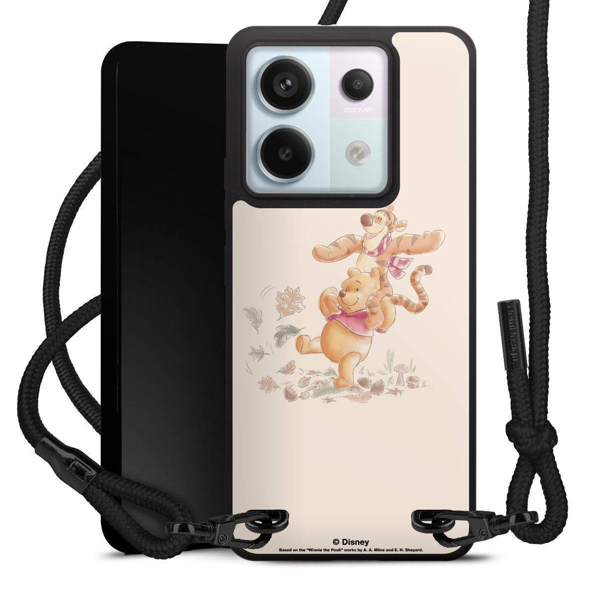 The matt black silicone case is made of flexible TPU (thermoplastic polyurethane) and offers robust protection. The durable, unbreakable material makes the cover flexible and dimensionally stable at the same time. The matte surface makes your design stand out more and is less susceptible to fingerprints and dirt. The stylish trend accessory fits comfortably in the hand and is perfectly complemented by the fabric (polyester) mobile phone strap. The braided fabric strap is approx. 1.70 metres long with a diameter of approx. 0.5 cm. Due to the special knotting technique, the length of the strap can be adjusted by simply pulling it, so that you can adapt it individually to your wishes. The practical case to wear around your neck is available with the fabric strap in black. As a little icing on the cake, we have provided the strap with a chic metal fastener in matt black. The strap is securely fastened to the case with loops made of high-quality genuine leather and press studs. The ends of the fabric strap are covered with metallic end caps and thus protected from fraying.