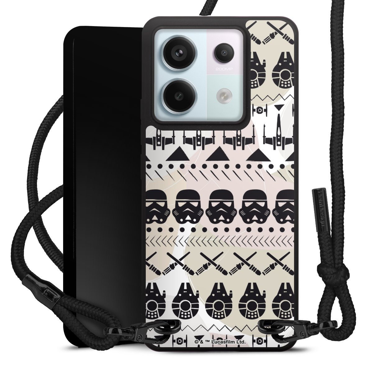 Pure Black: Phone case, fabric strap and metal details in stylish matt black.