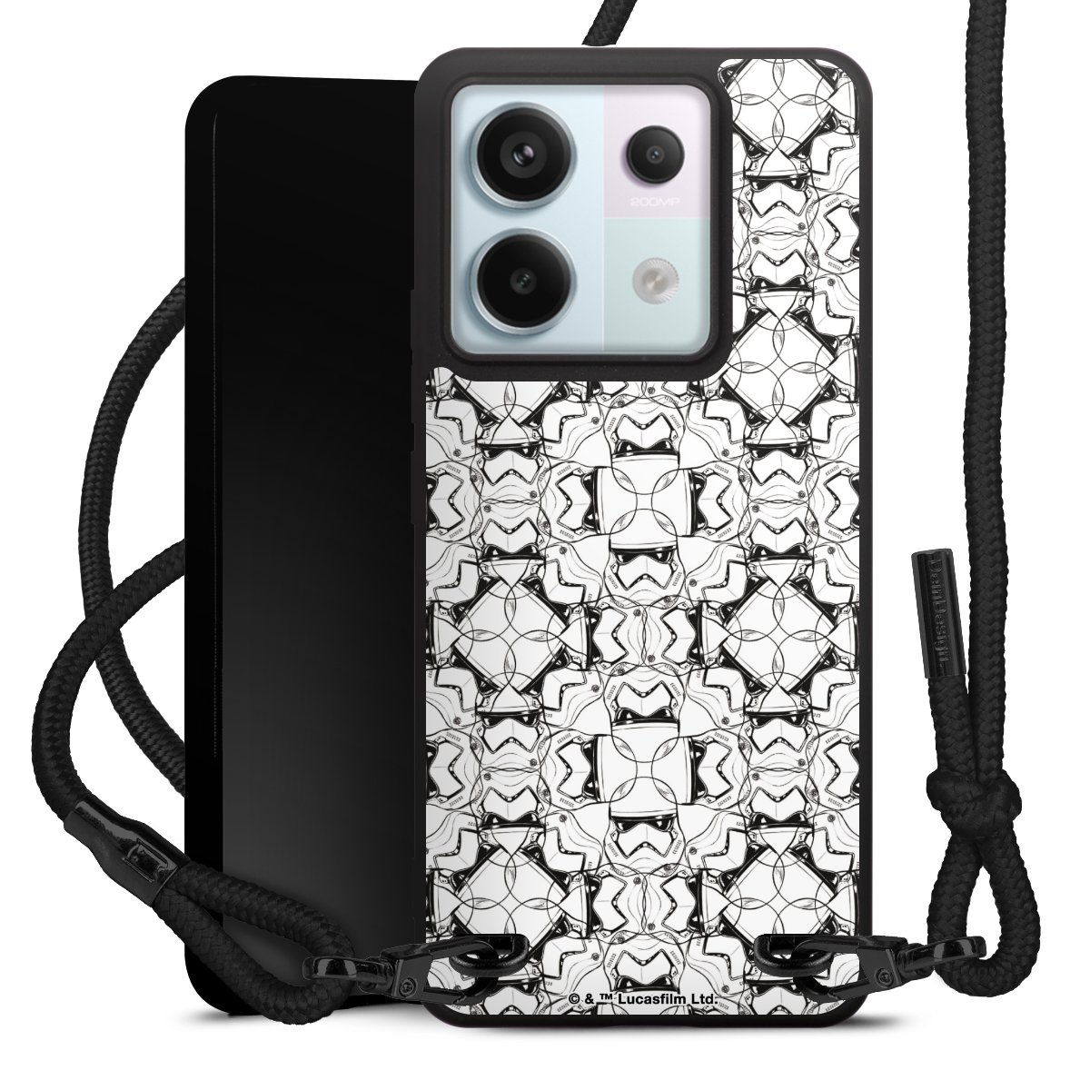 Pure Black: Phone case, fabric strap and metal details in stylish matt black.