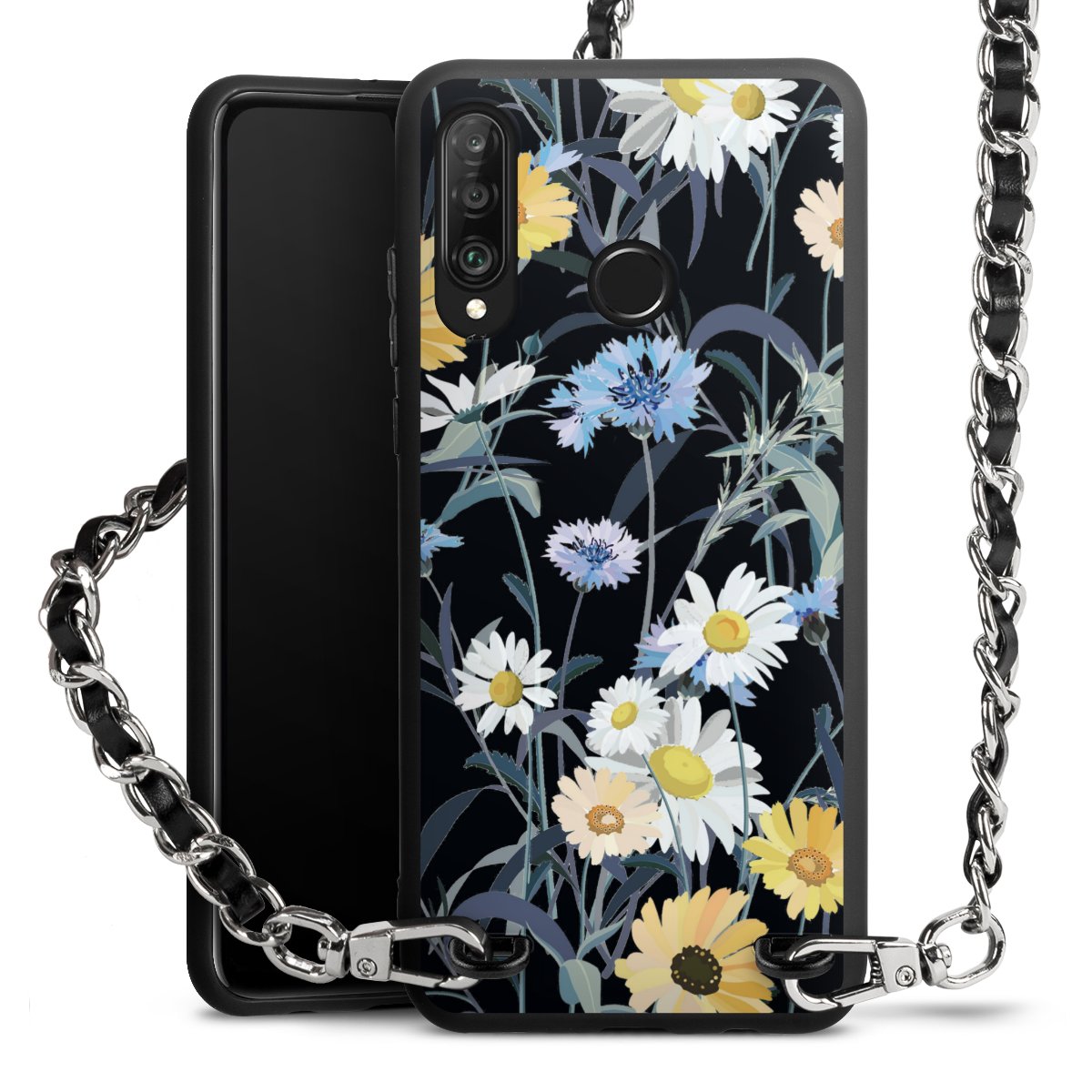 Pure Black: Phone case, fabric strap and metal details in stylish matt black.