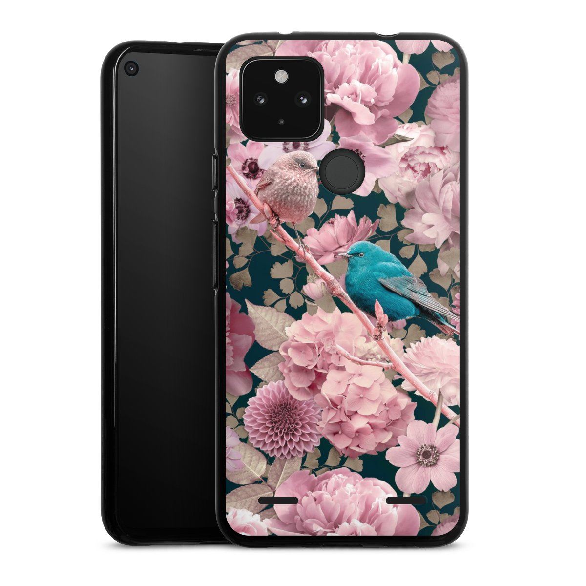 Sparrows in Pink Flower Pattern