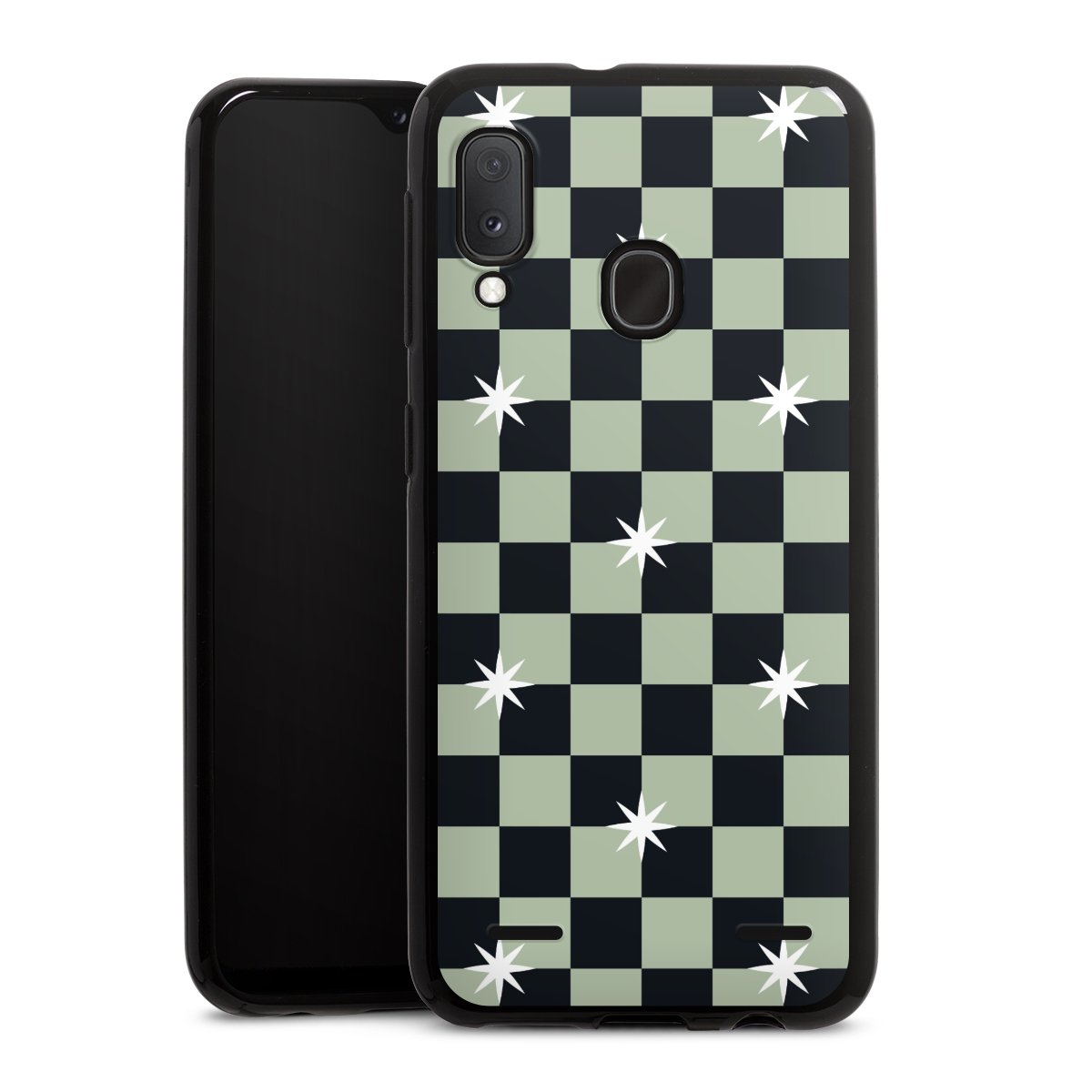 Checked Pattern Black Grey Stars