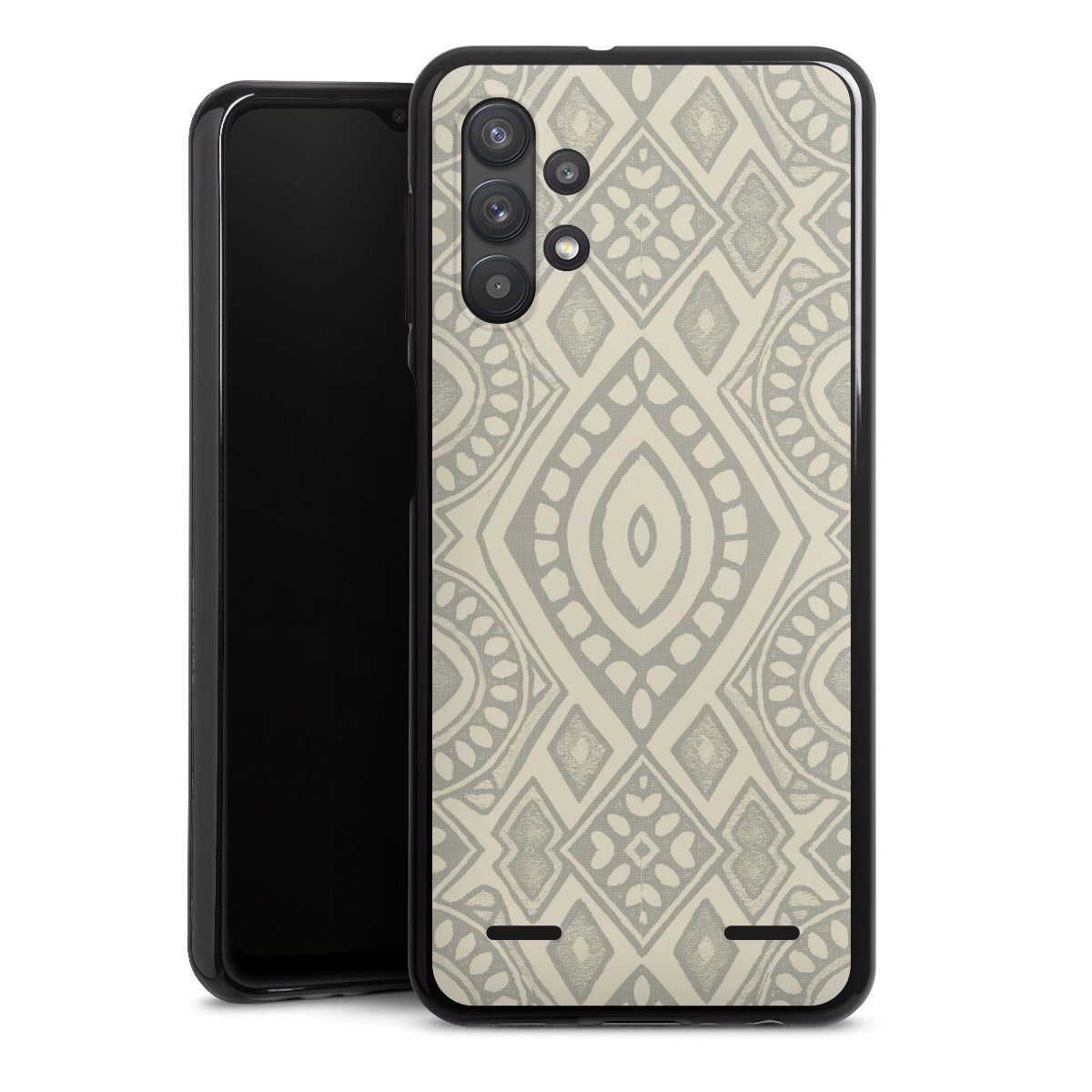 Boho Geometric Mosaic Pattern Neutral Grey and Beige