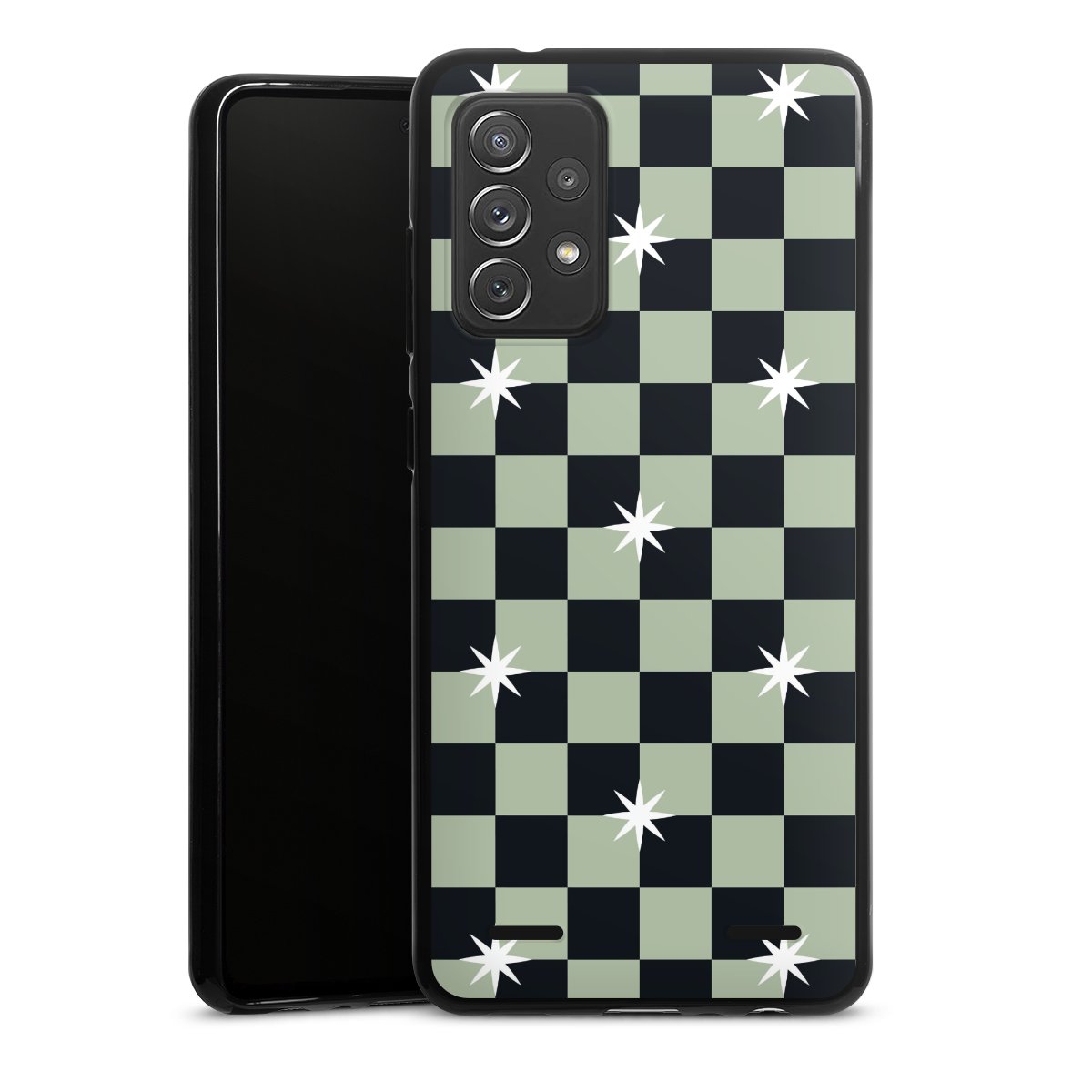 Checked Pattern Black Grey Stars