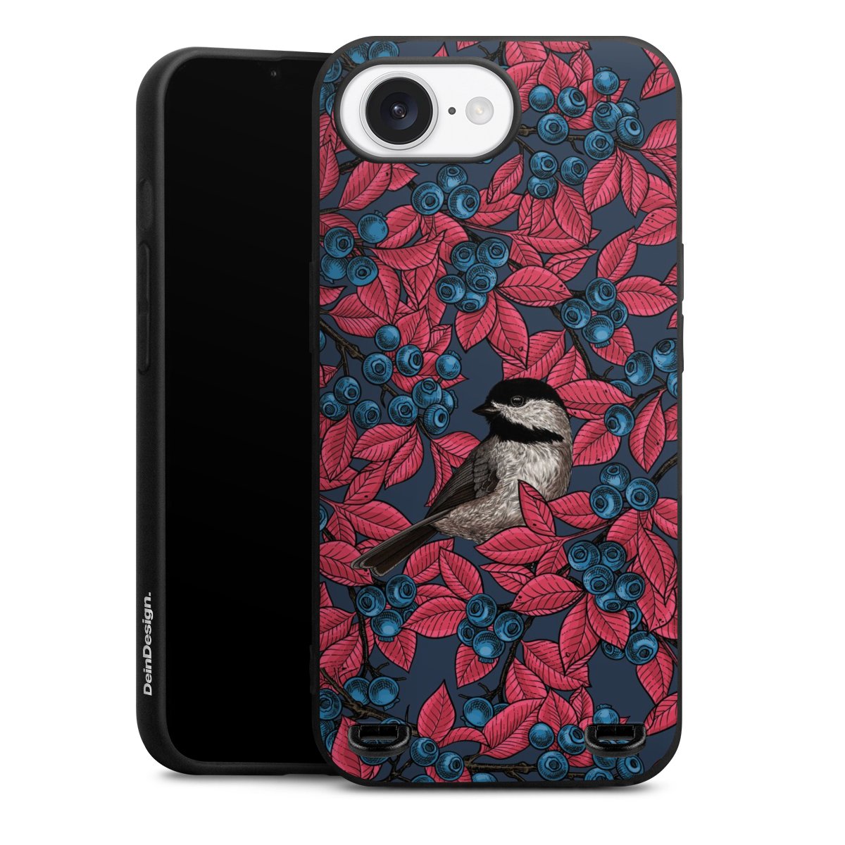 Blueberries And Birds On Navy
