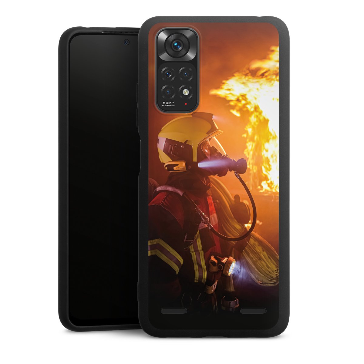 Firefighter Looking Up Explosion