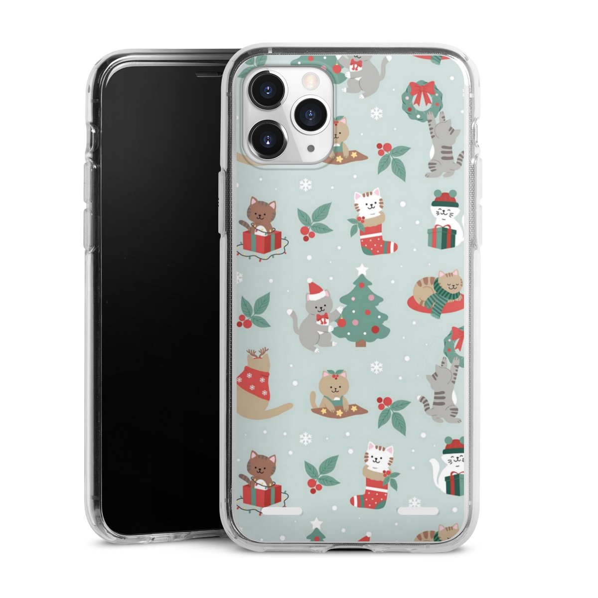 Cute Winter Wonderland Christmas Festive Cats on Teal