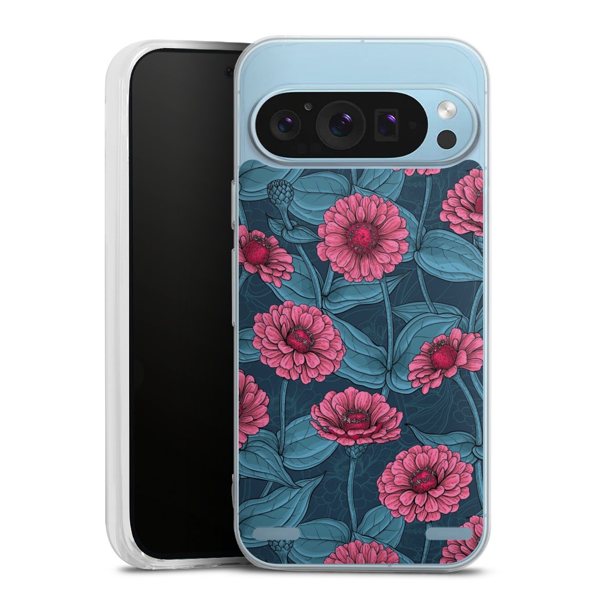 Flower Pattern Pink And Blue Illustration