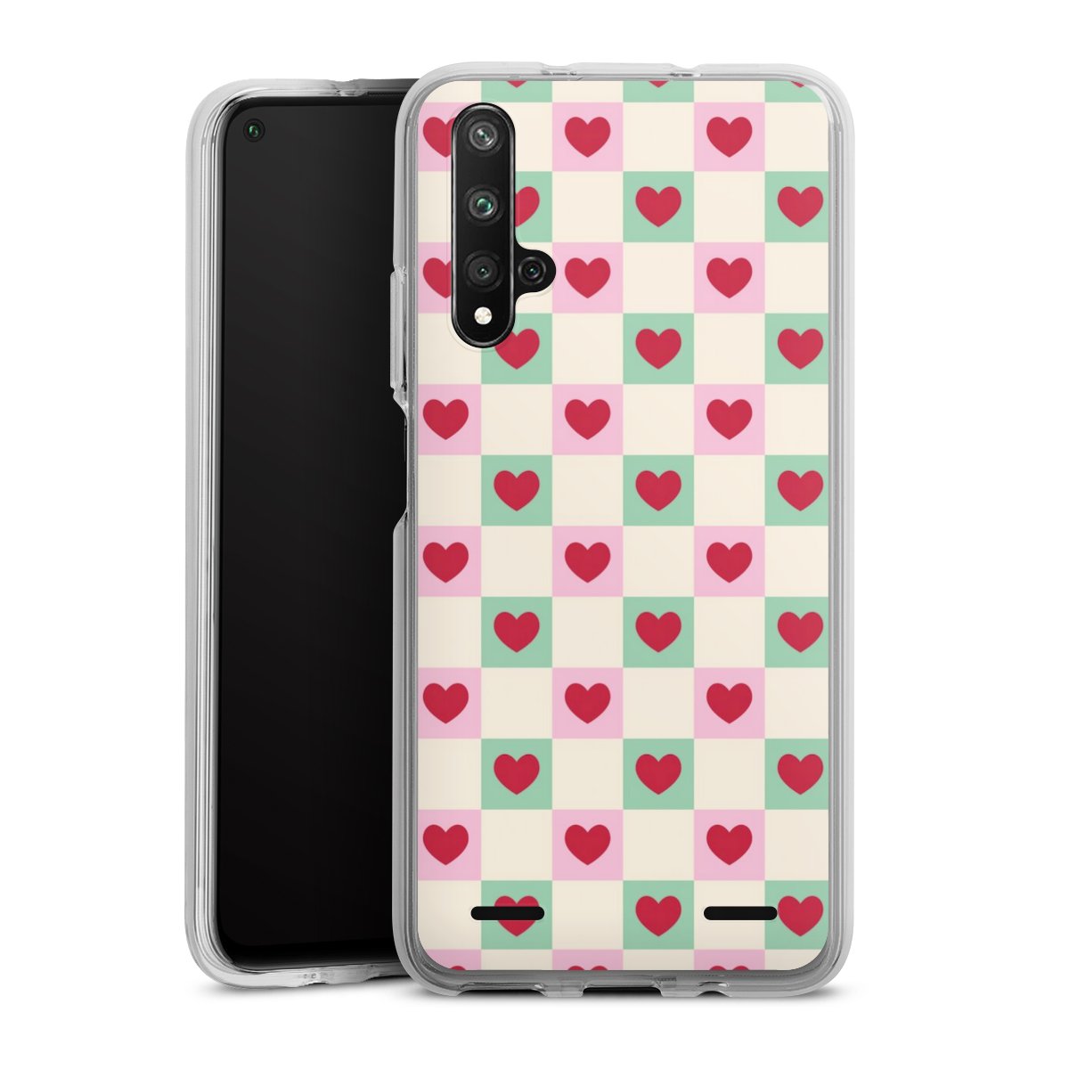Valentine Checked Hearts Pattern Pink Green