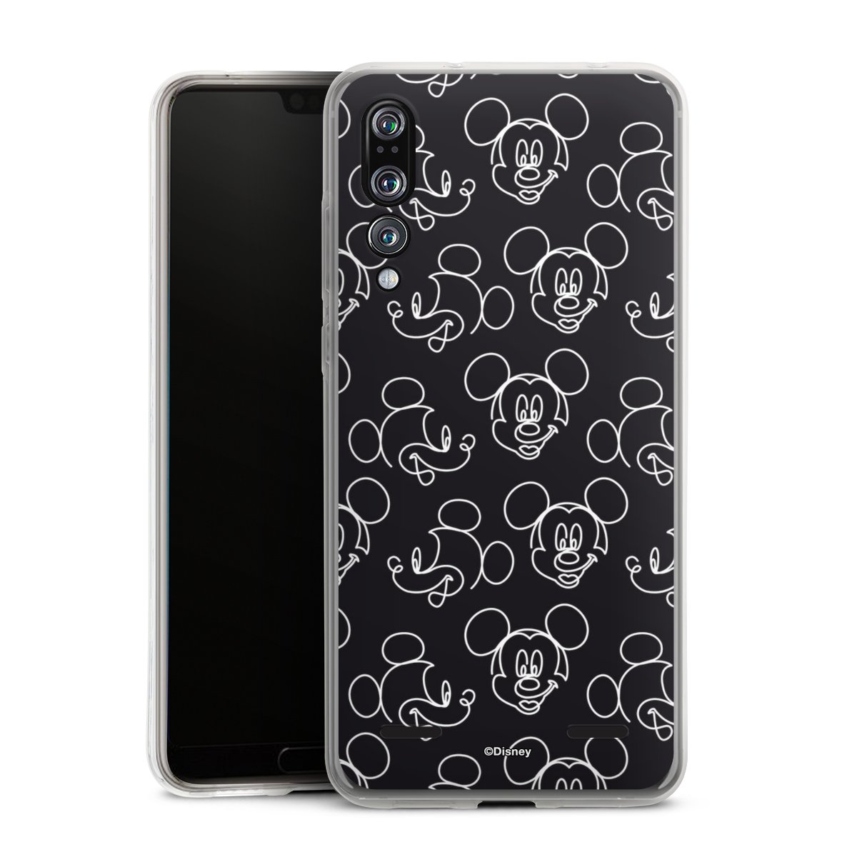 Disney Mickey Faces Black Line Art Pattern