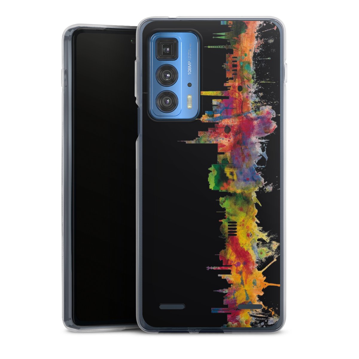 For our Carry Case Single we are using our advanced direct printing technology. The backside is fully printabale, the frame is left unprinted. You can order the phone case without print, printed completely or also with a partial print. Choose one of our exclusive, pre-made shop designs or let your creativity shine and create your very own unique design with your pictures, overlays and text.