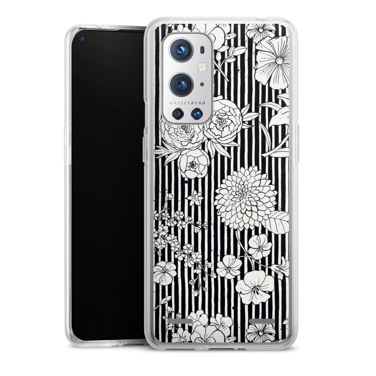Flowers and Stripes Black and White