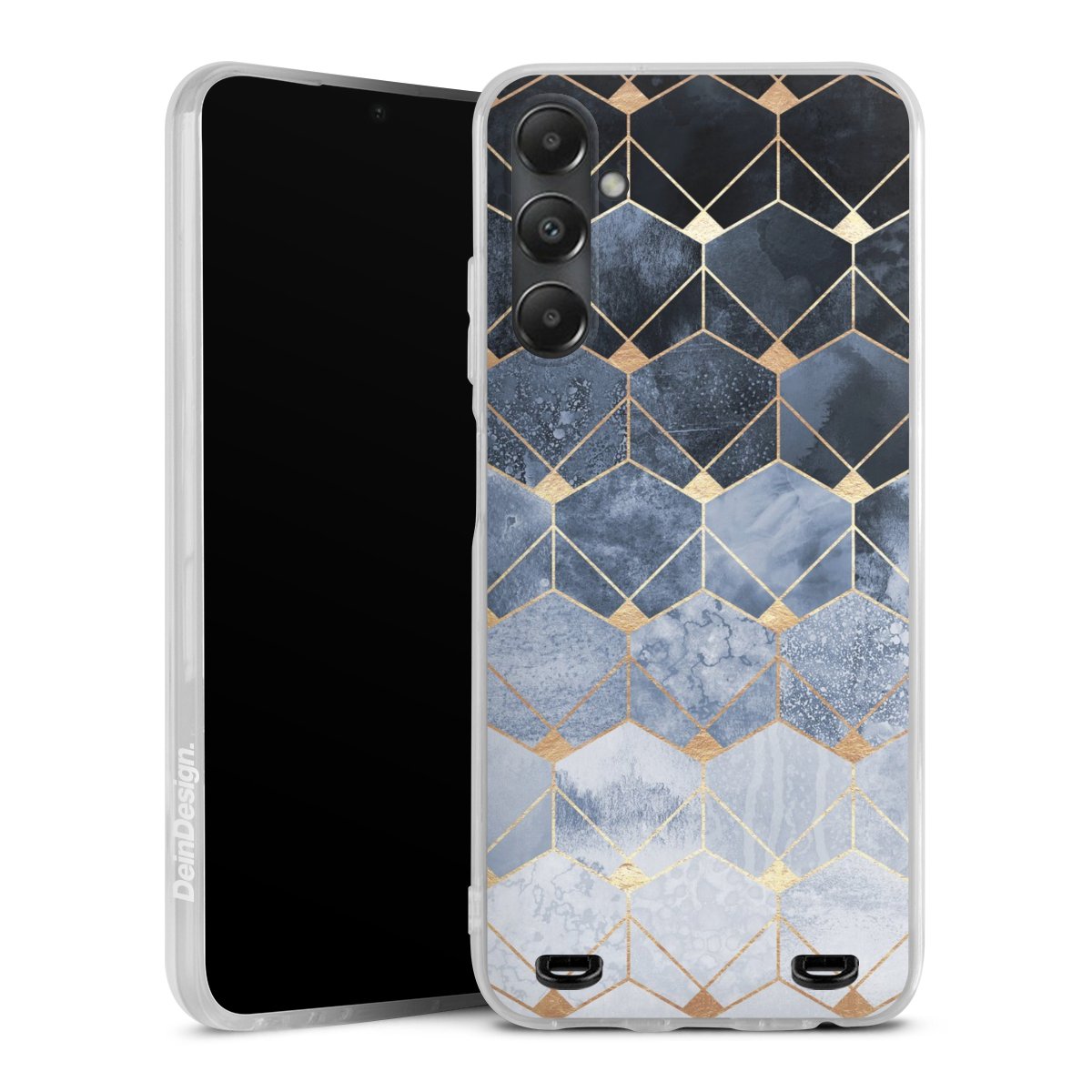Blue Hexagons And Diamonds Gold Print