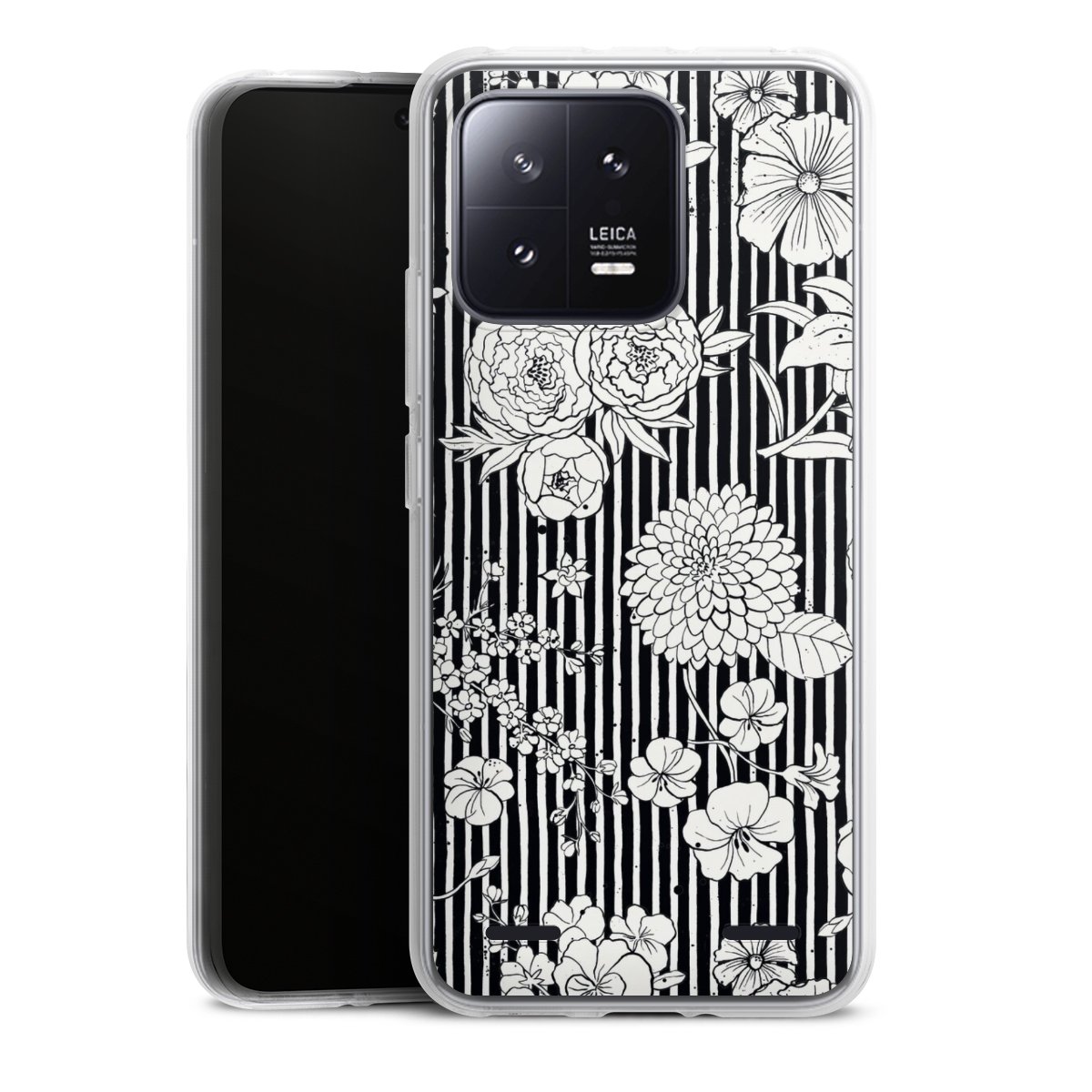 Flowers and Stripes Black and White