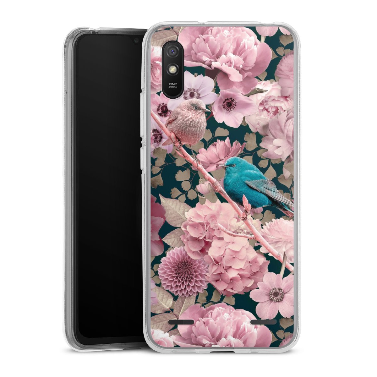 Sparrows in Pink Flower Pattern