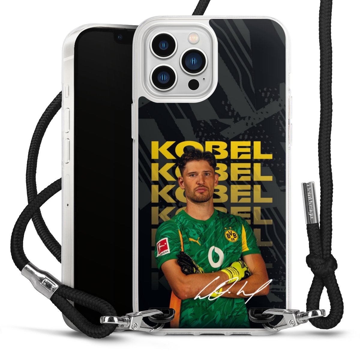 Keep your phone handy at all times, thanks to the flexible silicone case with a textile strap.