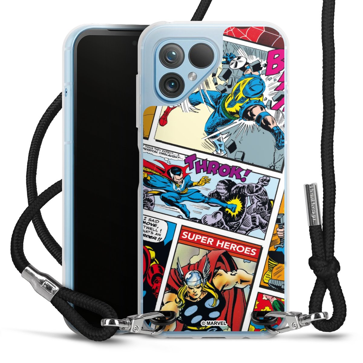Keep your phone handy at all times, thanks to the flexible silicone case with a textile strap.