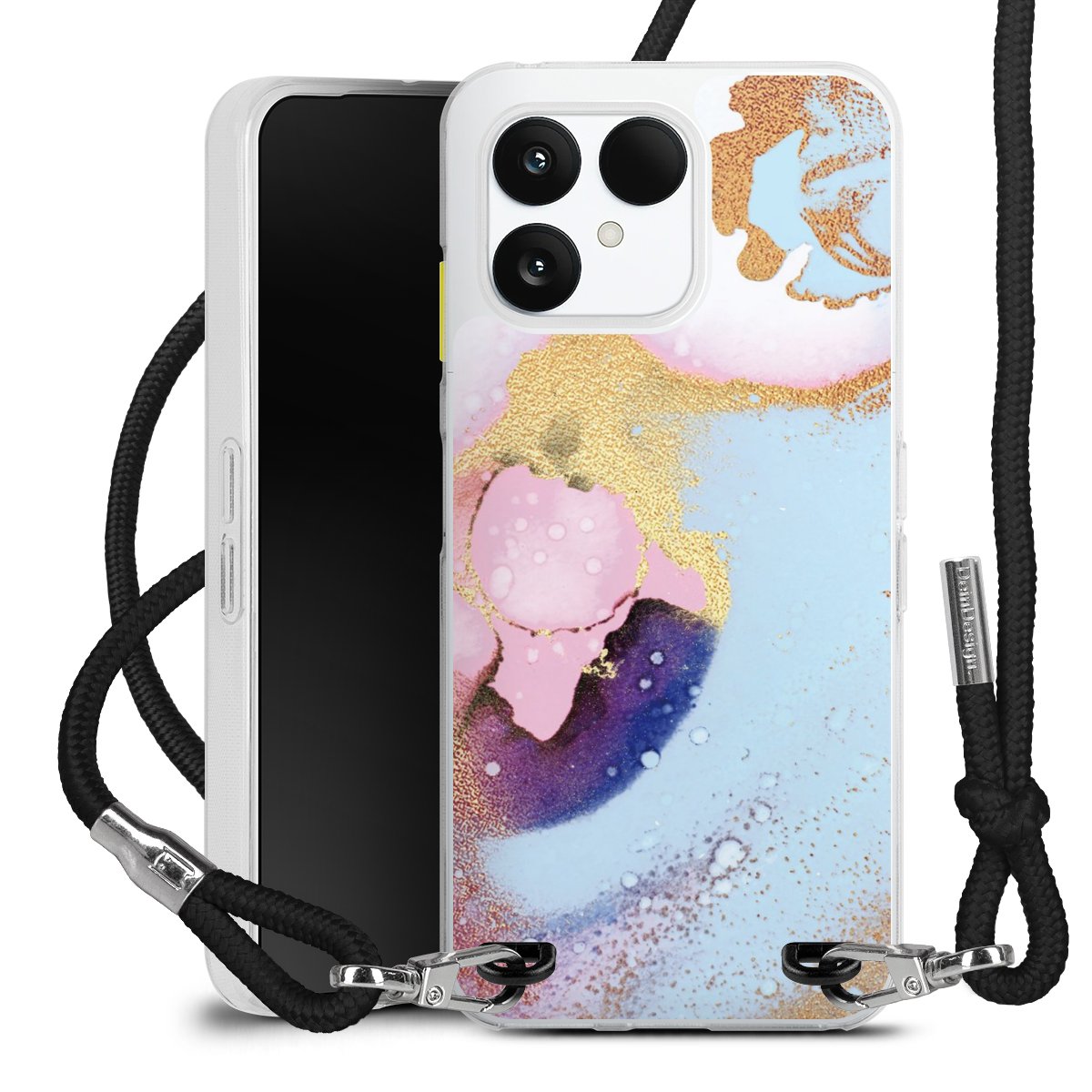 Keep your phone handy at all times, thanks to the flexible silicone case with a textile strap.