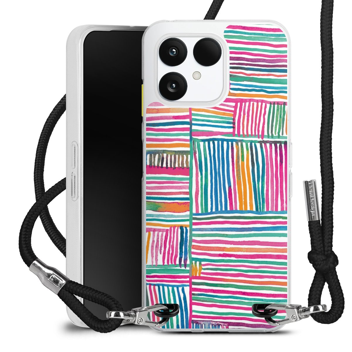 Keep your phone handy at all times, thanks to the flexible silicone case with a textile strap.