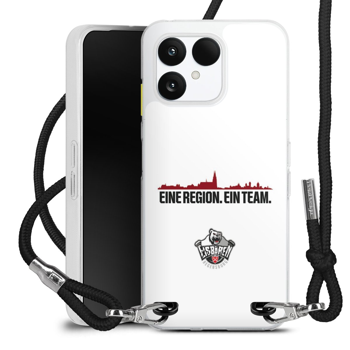 Keep your phone handy at all times, thanks to the flexible silicone case with a textile strap.
