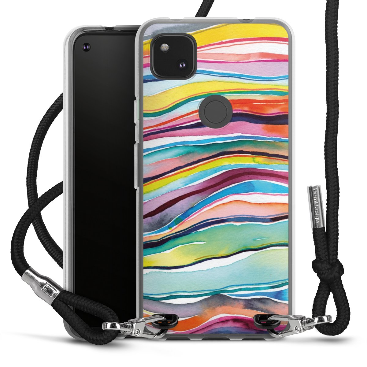 Keep your phone handy at all times, thanks to the flexible silicone case with a textile strap.