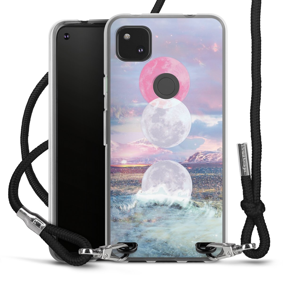 Keep your phone handy at all times, thanks to the flexible silicone case with a textile strap.