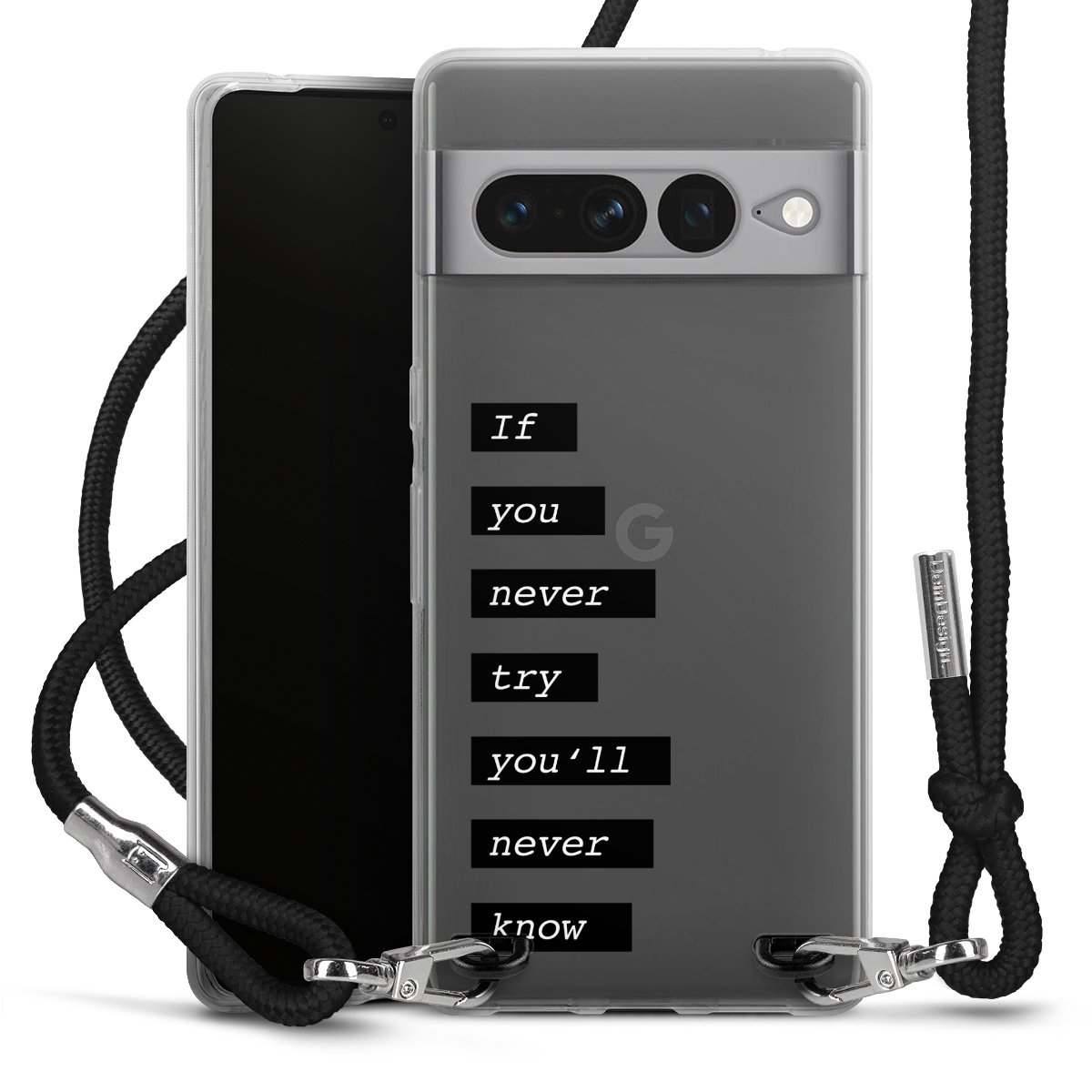 The flexible case is made from a high quality TPU material (thermoplastic Polyurethan). Thanks to its long-lasting and break resistant characteristics, the case is flexible yet consistent in form and has a great grip and feel. The textile strap made from Polyester gives a chic yet casual accent allowing you to carry your phone like a bag or necklace - a practical gadget perfect for your next adventure. The textile strap is about 1.70 meters long and the length can easily be adjusted through the knots. Our Carry Case is available in black, red, pink, grey, mustard, dark green and royal blue. We added a metal fastening to give the product an elegant touch. The ends of the textile strap are covered with metallic end caps to protect them against fraying.