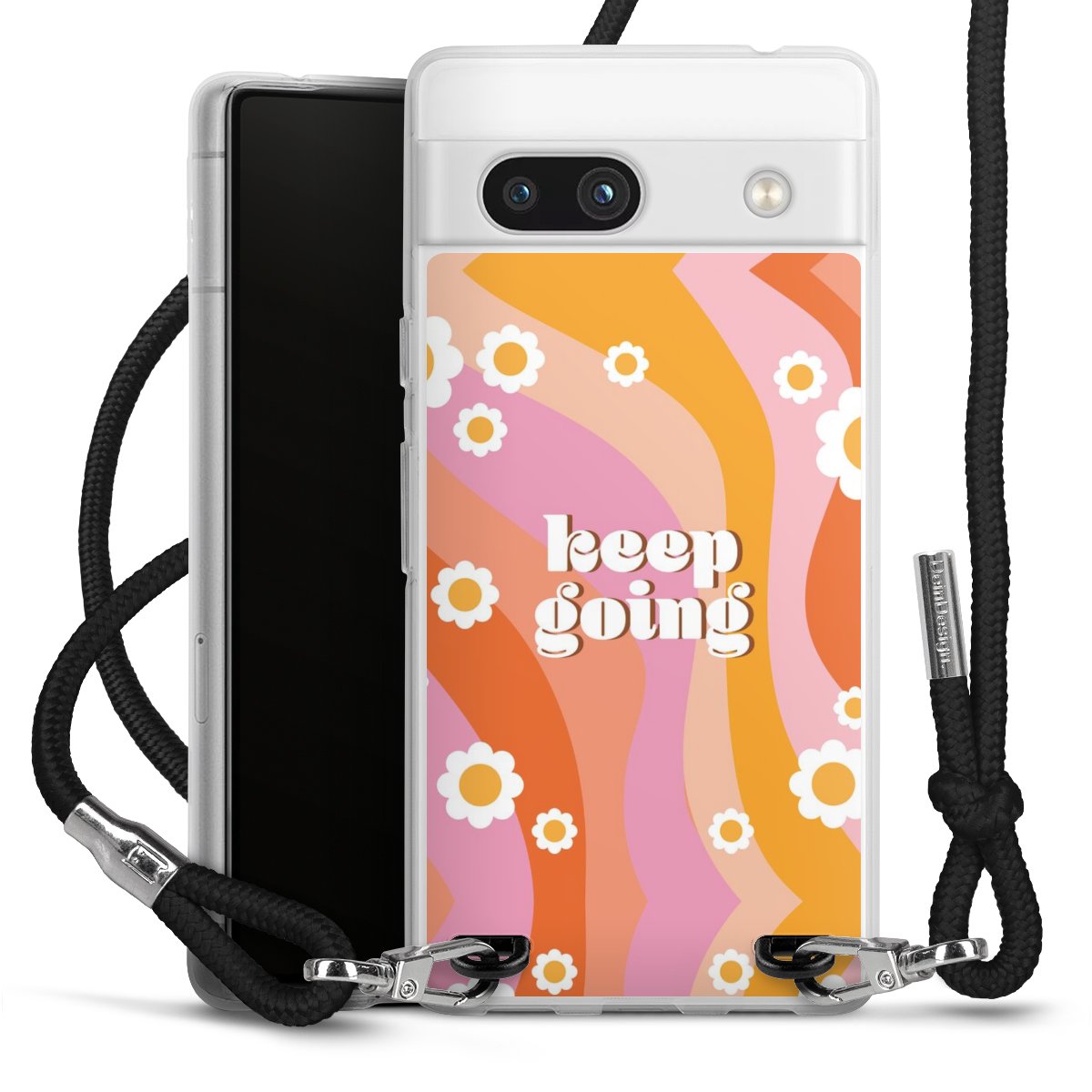 Keep your phone handy at all times, thanks to the flexible silicone case with a textile strap.