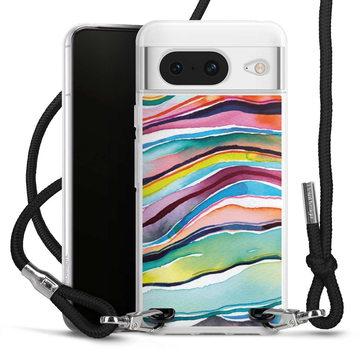 The flexible case is made from a high quality TPU material (thermoplastic Polyurethan). Thanks to its long-lasting and break resistant characteristics, the case is flexible yet consistent in form and has a great grip and feel. The textile strap made from Polyester gives a chic yet casual accent allowing you to carry your phone like a bag or necklace - a practical gadget perfect for your next adventure. The textile strap is about 1.70 meters long and the length can easily be adjusted through the knots. Our Carry Case is available in black, red, pink, grey, mustard, dark green and royal blue. We added a metal fastening to give the product an elegant touch. The ends of the textile strap are covered with metallic end caps to protect them against fraying.