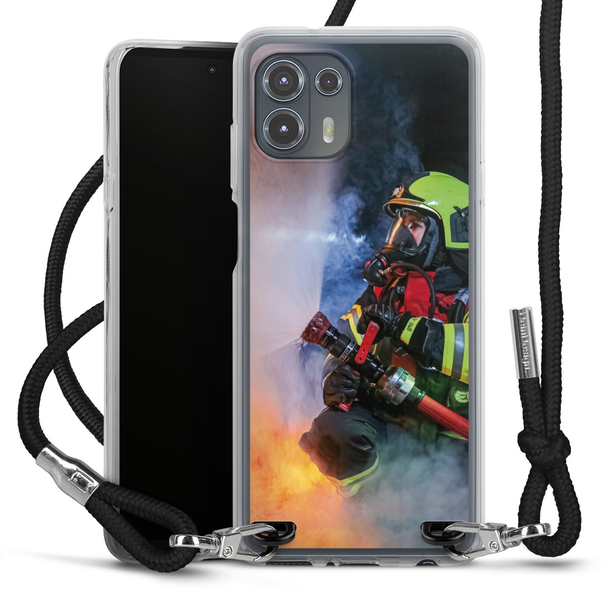 Keep your phone handy at all times, thanks to the flexible silicone case with a textile strap.