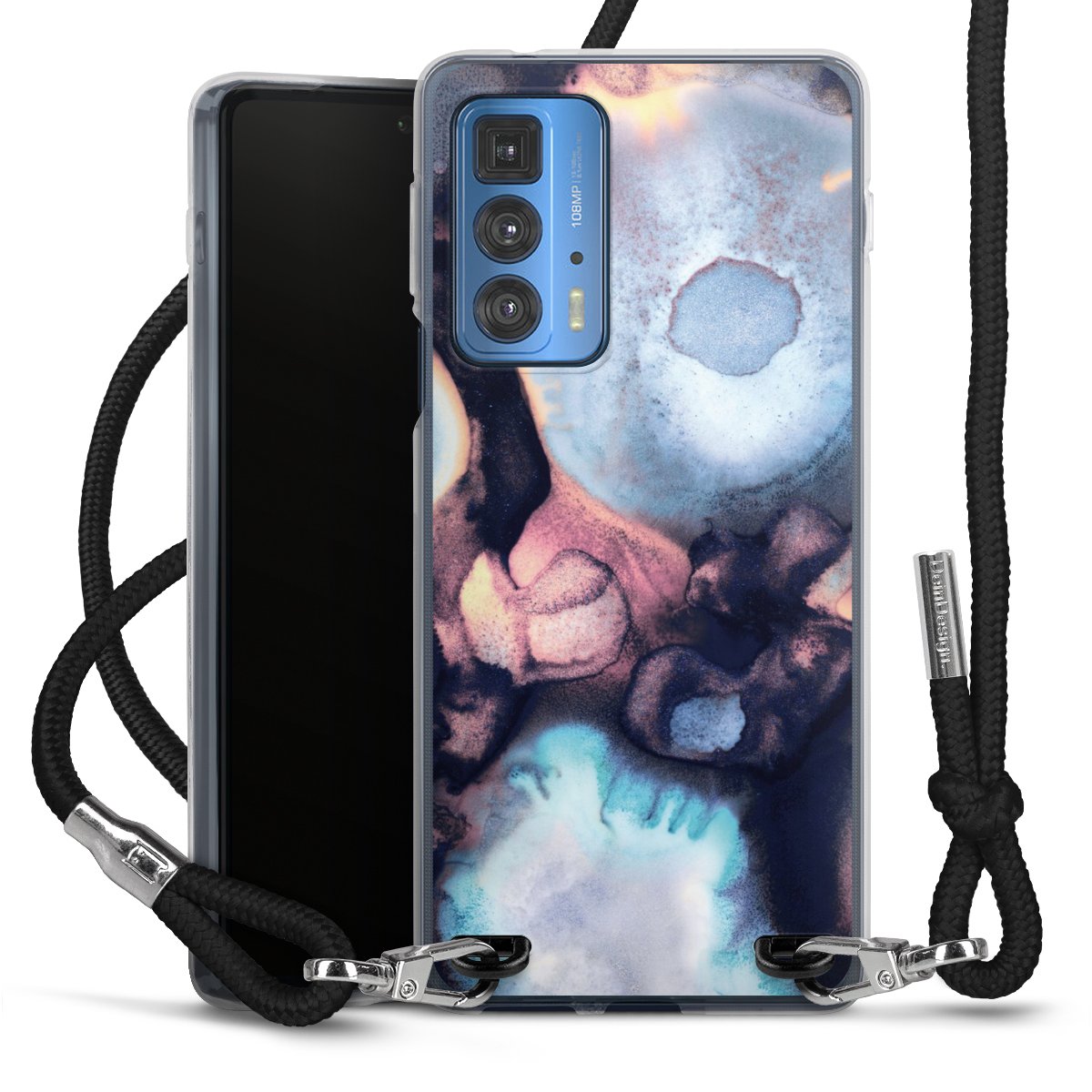 The flexible case is made from a high quality TPU material (thermoplastic Polyurethan). Thanks to its long-lasting and break resistant characteristics, the case is flexible yet consistent in form and has a great grip and feel. The textile strap made from Polyester gives a chic yet casual accent allowing you to carry your phone like a bag or necklace - a practical gadget perfect for your next adventure. The textile strap is about 1.70 meters long and the length can easily be adjusted through the knots. Our Carry Case is available in black, red, pink, grey, mustard, dark green and royal blue. We added a metal fastening to give the product an elegant touch. The ends of the textile strap are covered with metallic end caps to protect them against fraying.