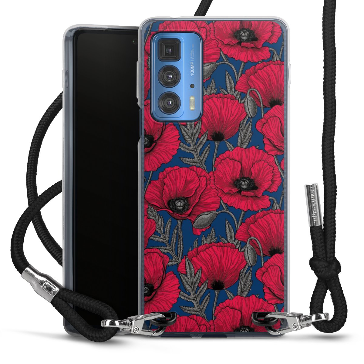 The flexible case is made from a high quality TPU material (thermoplastic Polyurethan). Thanks to its long-lasting and break resistant characteristics, the case is flexible yet consistent in form and has a great grip and feel. The textile strap made from Polyester gives a chic yet casual accent allowing you to carry your phone like a bag or necklace - a practical gadget perfect for your next adventure. The textile strap is about 1.70 meters long and the length can easily be adjusted through the knots. Our Carry Case is available in black, red, pink, grey, mustard, dark green and royal blue. We added a metal fastening to give the product an elegant touch. The ends of the textile strap are covered with metallic end caps to protect them against fraying.