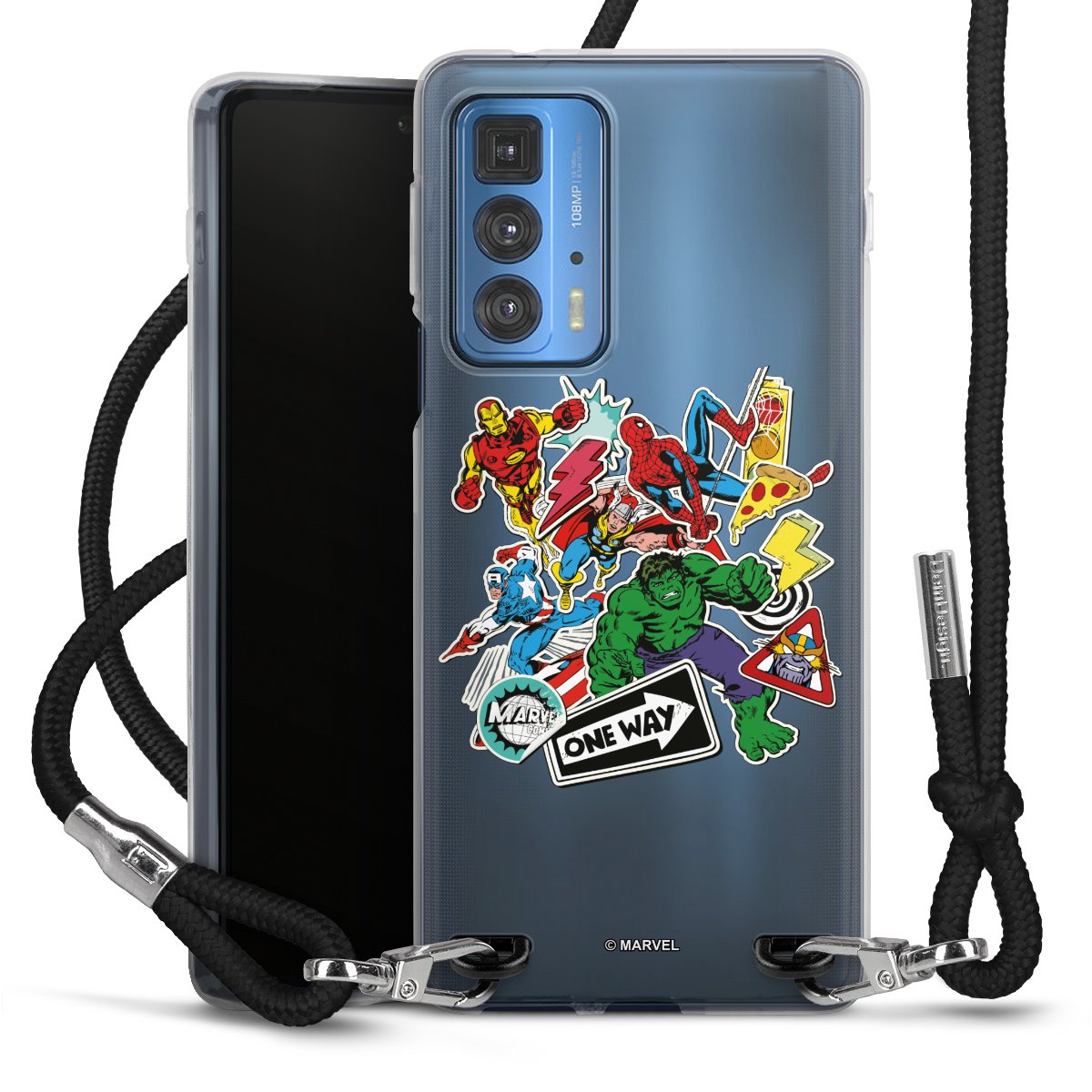 Keep your phone handy at all times, thanks to the flexible silicone case with a textile strap.