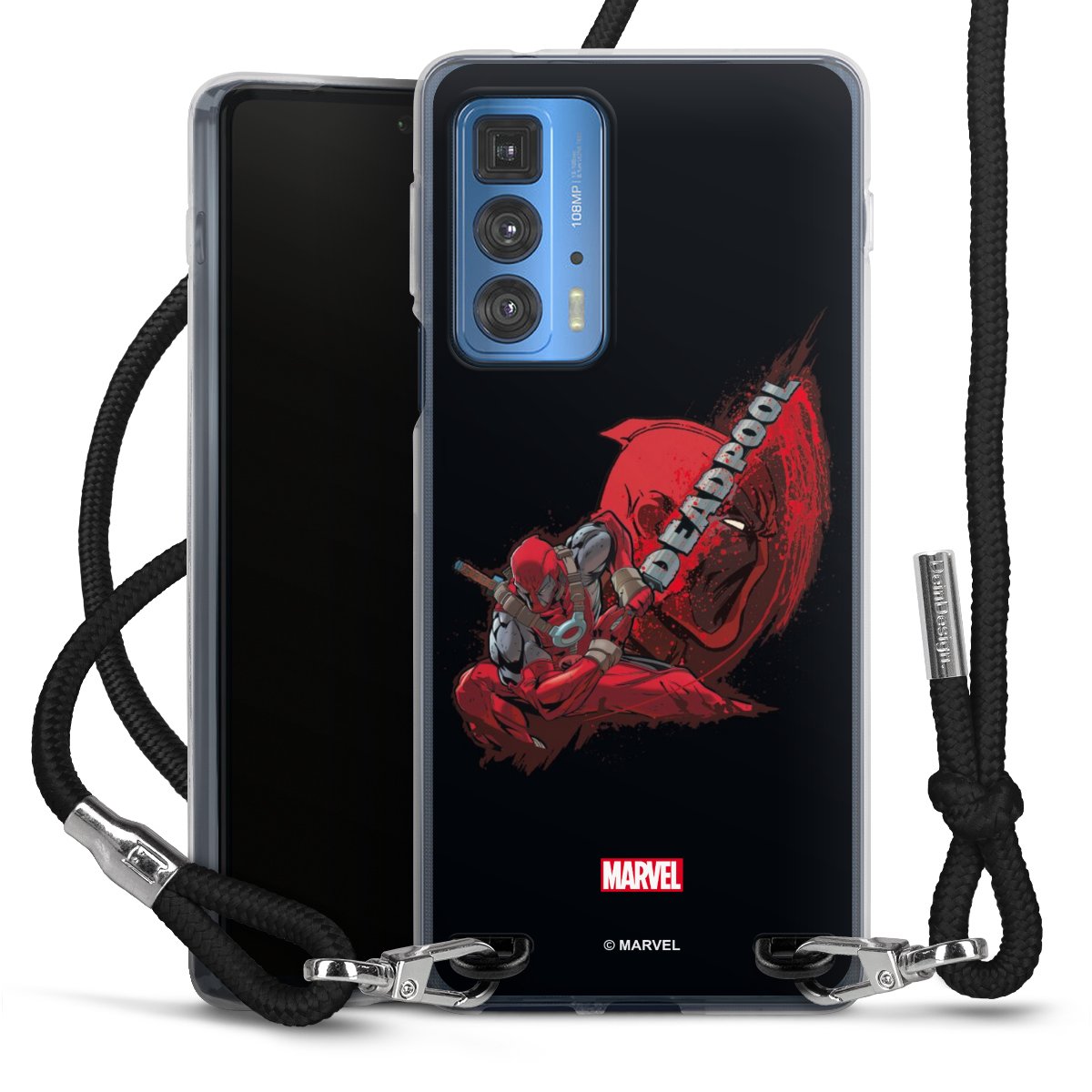Keep your phone handy at all times, thanks to the flexible silicone case with a textile strap.