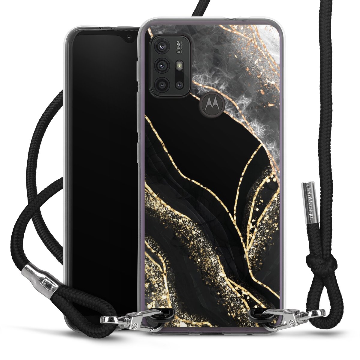 The flexible case is made from a high quality TPU material (thermoplastic Polyurethan). Thanks to its long-lasting and break resistant characteristics, the case is flexible yet consistent in form and has a great grip and feel. The textile strap made from Polyester gives a chic yet casual accent allowing you to carry your phone like a bag or necklace - a practical gadget perfect for your next adventure. The textile strap is about 1.70 meters long and the length can easily be adjusted through the knots. Our Carry Case is available in black, red, pink, grey, mustard, dark green and royal blue. We added a metal fastening to give the product an elegant touch. The ends of the textile strap are covered with metallic end caps to protect them against fraying.