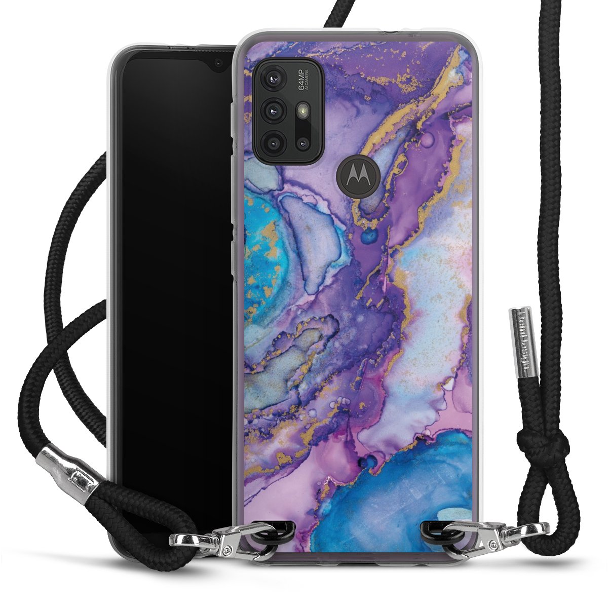 The flexible case is made from a high quality TPU material (thermoplastic Polyurethan). Thanks to its long-lasting and break resistant characteristics, the case is flexible yet consistent in form and has a great grip and feel. The textile strap made from Polyester gives a chic yet casual accent allowing you to carry your phone like a bag or necklace - a practical gadget perfect for your next adventure. The textile strap is about 1.70 meters long and the length can easily be adjusted through the knots. Our Carry Case is available in black, red, pink, grey, mustard, dark green and royal blue. We added a metal fastening to give the product an elegant touch. The ends of the textile strap are covered with metallic end caps to protect them against fraying.