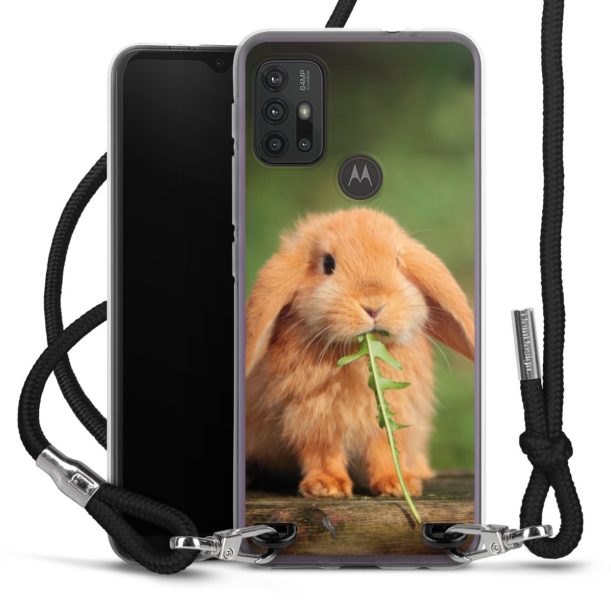 Keep your phone handy at all times, thanks to the flexible silicone case with a textile strap.